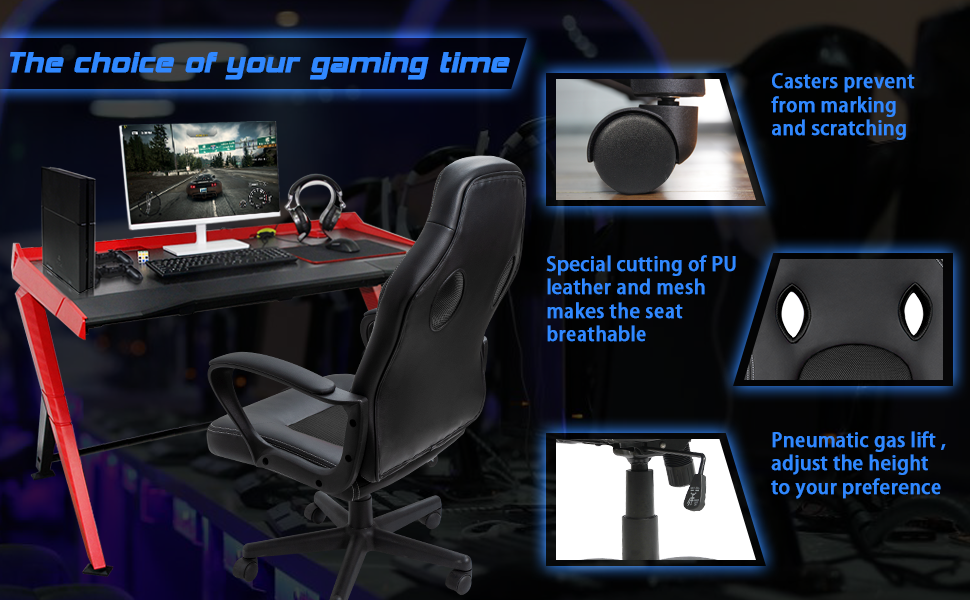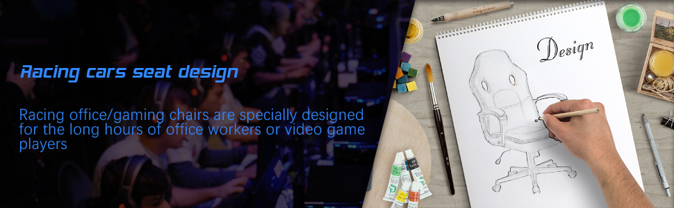 – Racing office/gaming chairs are specially designed for the long hours of office workers or video game players. The high backrest and shape of the Racing chair ensure proper alignment and support of your spine as well as your neck.