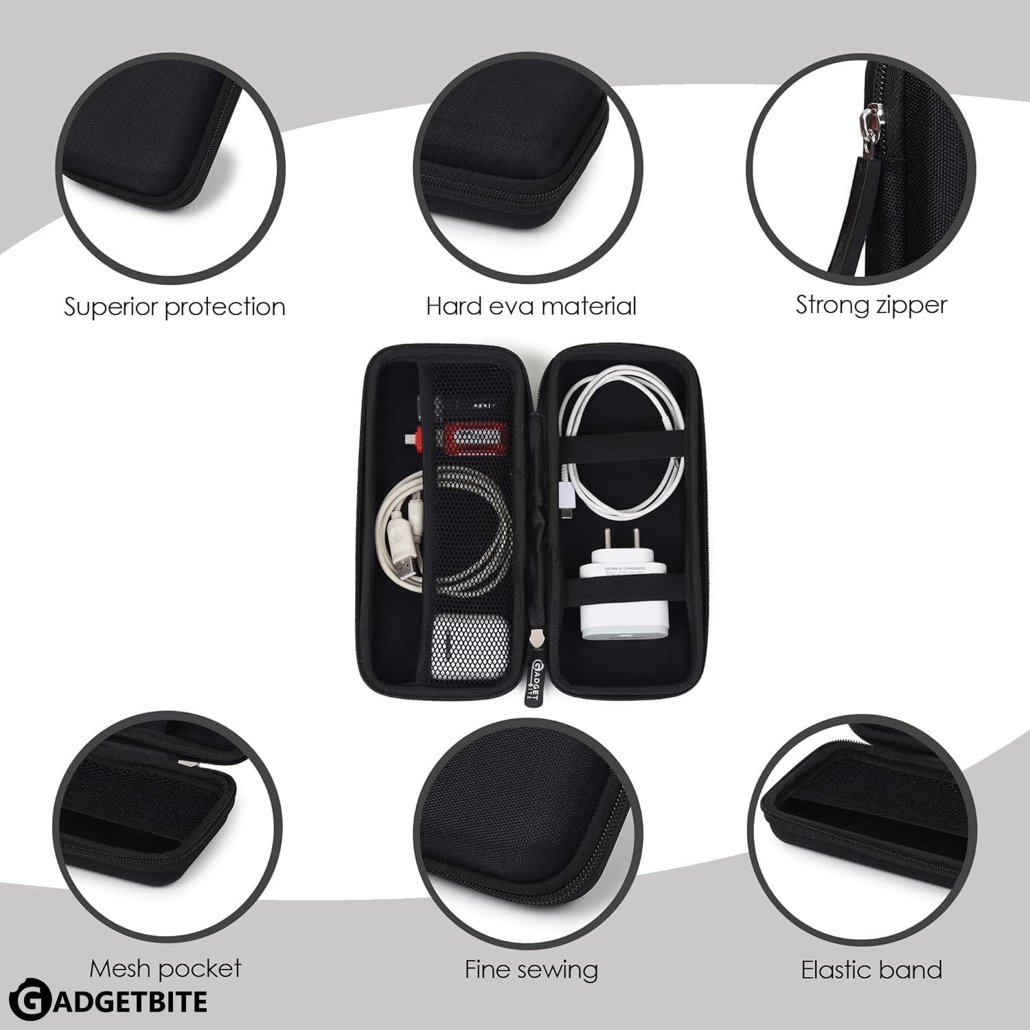 GadgetBite Portable Electronic Accessories Organizer – Travel-Friendly Pouch For Vlogging Camera, Usb Cables, Power Banks, Adapters, Hard Disks, And More (Black)