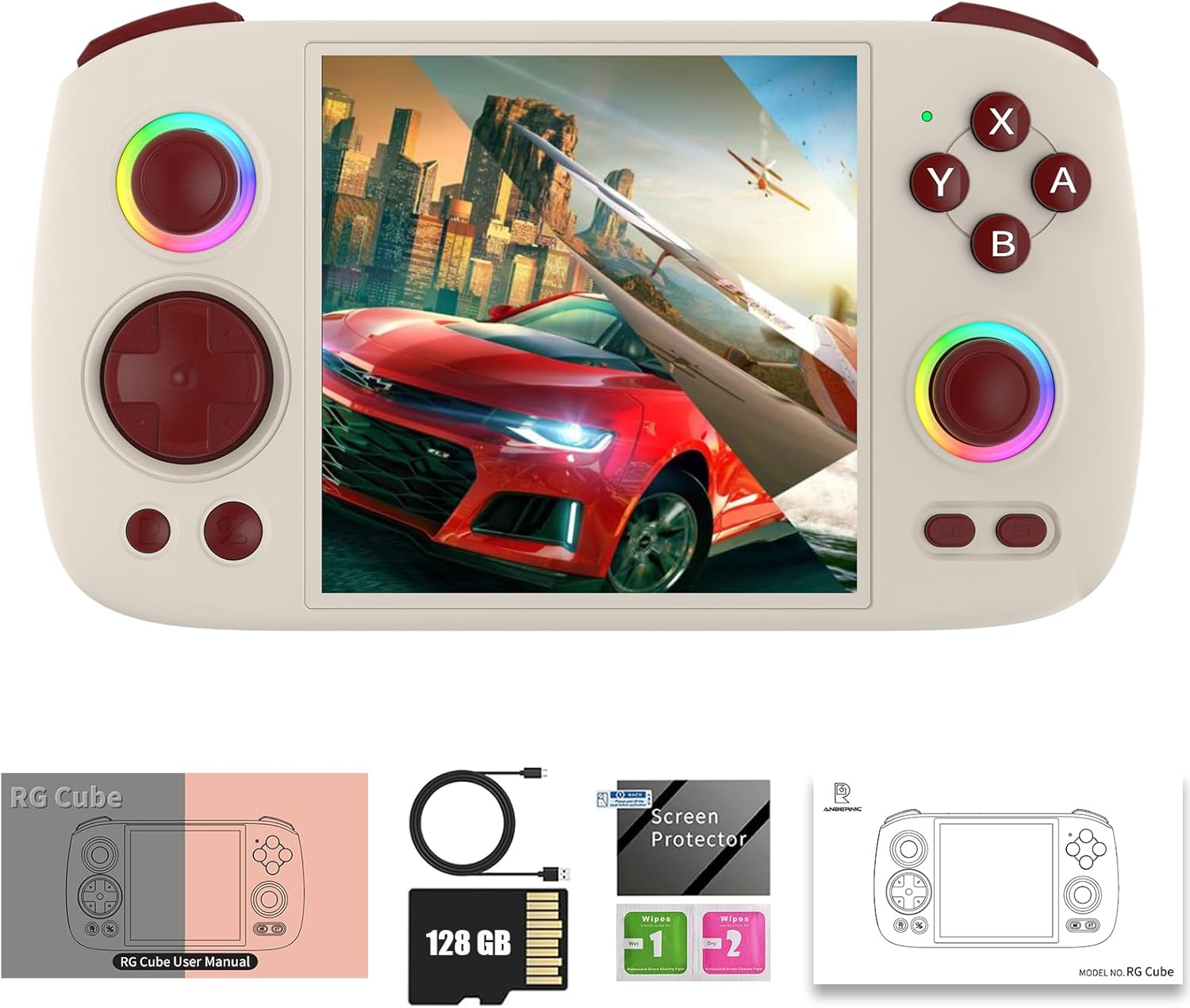RG Cube Retro Game Console Handheld Game Console 8+128G Multi-Touch Screen Android 13 System Video Game Console 5200mAh Battery,High-Speed Fan,16 Million Color Rgb Lighting