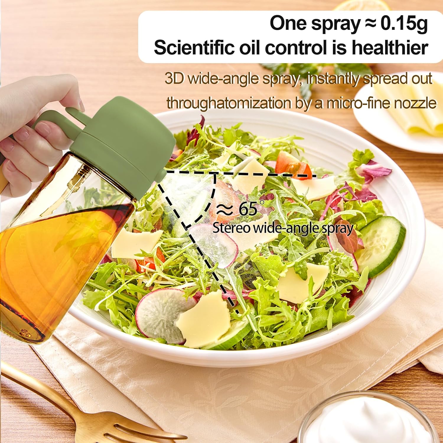 《Precise Oil Control》Each spray dispenses 0.15-0.2g of oil, helping you manage your daily intake. This cooking oil sprayer is designed for healthier, more controlled cooking with minimal waste.