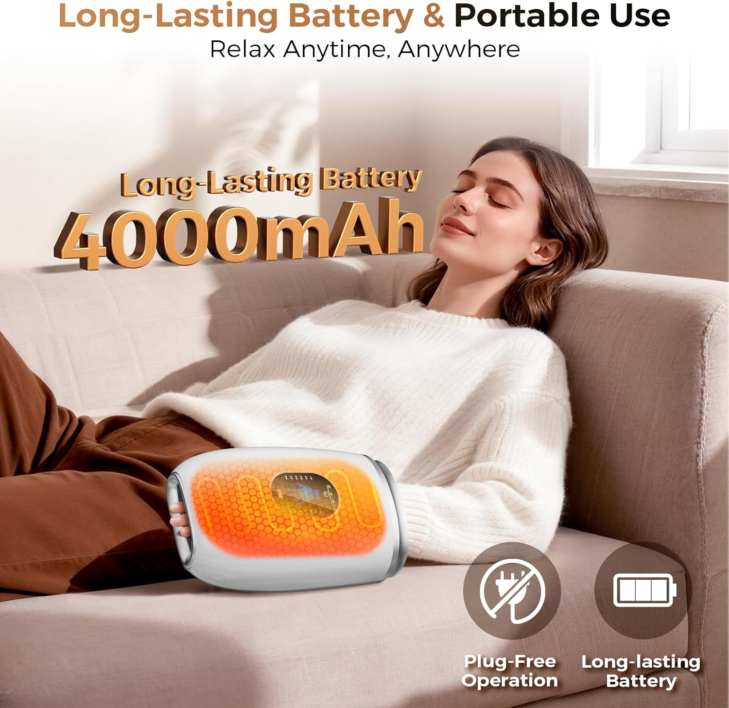 Hand Massager with Heat and Compression is an excellent device for anyone who frequently experiences hand fatigue, stiffness, or discomfort. Equipped with a 4000mAh rechargeable battery, it offers long-lasting use, making it convenient for daily relaxation without constant recharging.What stands out most is its combination of soothing kneading, stretching, and air compression, which provides a relaxing, spa-like experience. The heat function adds an extra layer of comfort, helping to improve blood circulation and ease tension in the palms, fingers, and wrists.With 6 massage modes and 6 intensity levels, this device allows you to fully customize your massage based on your needs—whether you want gentle relief or a deeper, more invigorating massage. It’s easy to operate and designed to fit most hand sizes comfortably.Overall, this hand massager makes a thoughtful gift for both women and men, especially those who work long hours, use their hands intensively, or simply enjoy relaxing at home. It’s a great investment for stress relief, hand wellness, and everyday comfort.