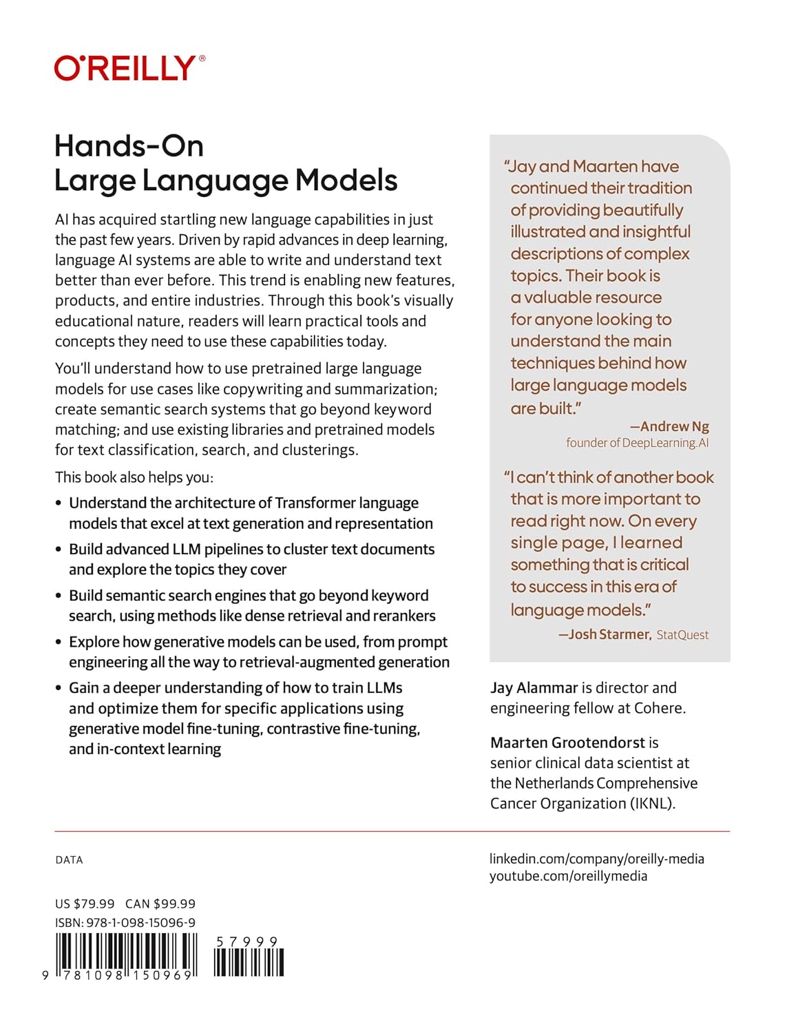 As someone who works in machine learning but mostly on CV problems, this book was a perfect bridge into the world of language models. It doesn’t assume you’re a total beginner, but it also doesn’t dump you in the deep end with dense theory and academic papers. The authors do a great job of grounding concepts in clear explanations and walk-throughs you can actually run.What stood out for me:• ✅ Hands-on notebooks + code to reinforce each concept• ✅ Explains transformer internals without getting lost in math• ✅ Covers modern workflows — from fine-tuning to inference• ✅ Clean visualizations (if you know Jay Alammar’s style, you know)Also, Maarten’s sections on vector databases, embeddings, and RAG workflows were super relevant for production applications. You can tell both authors have experience teaching and shipping real-world stuff.⚠️ Minor caveat: This isn’t a deep theoretical text — if you’re looking for the type of math found in something like “Deep Learning” by Goodfellow, this isn’t it. It’s much more about doing.If you’re a data scientist, ML engineer, or just a curious dev looking to go beyond ChatGPT and understand how to work with LLMs at a system level — grab this book. You’ll get a lot out of it.
