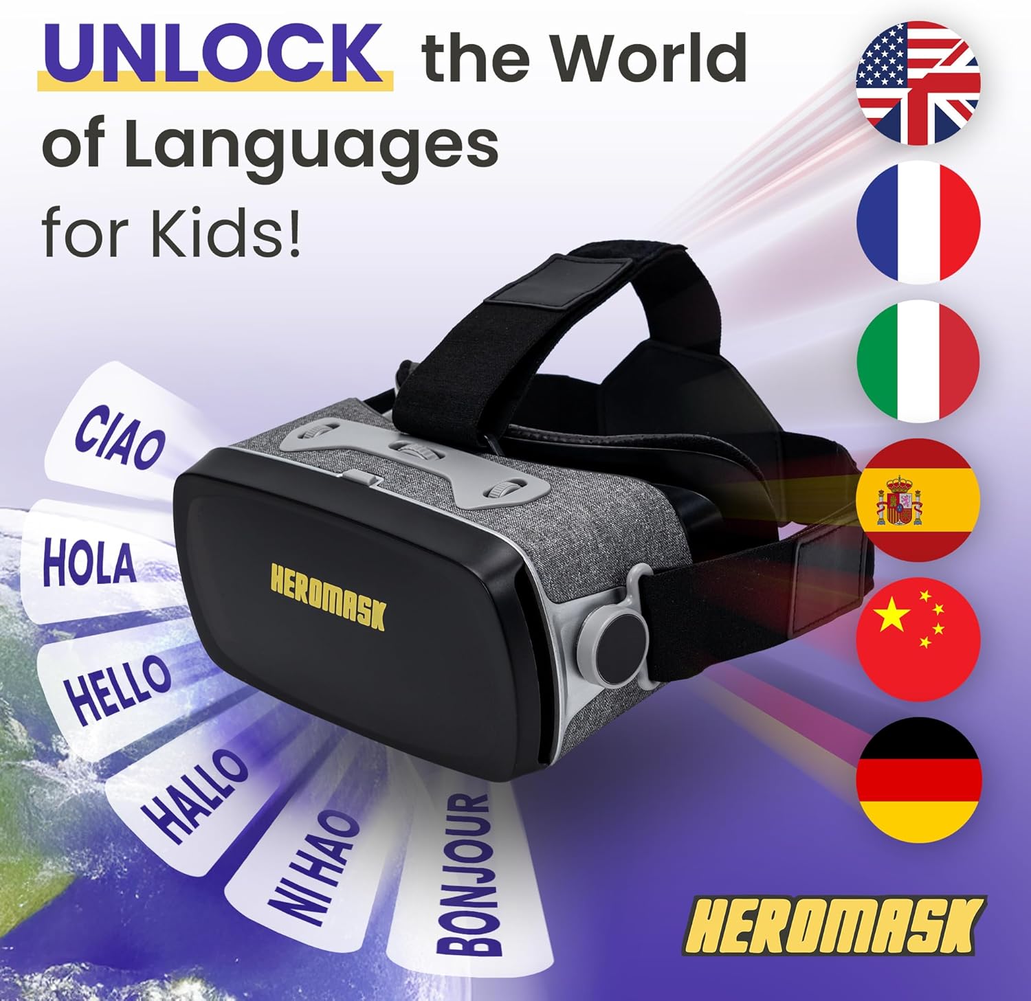13 reviews for Heromask: VR Headset for Kids + Game System to Learn Spanish Italian etc [Language Learning] Virtual Reality for Kids. Kids Gifts for Boys and Girls for Age 5 to 12 Years Old. Educational