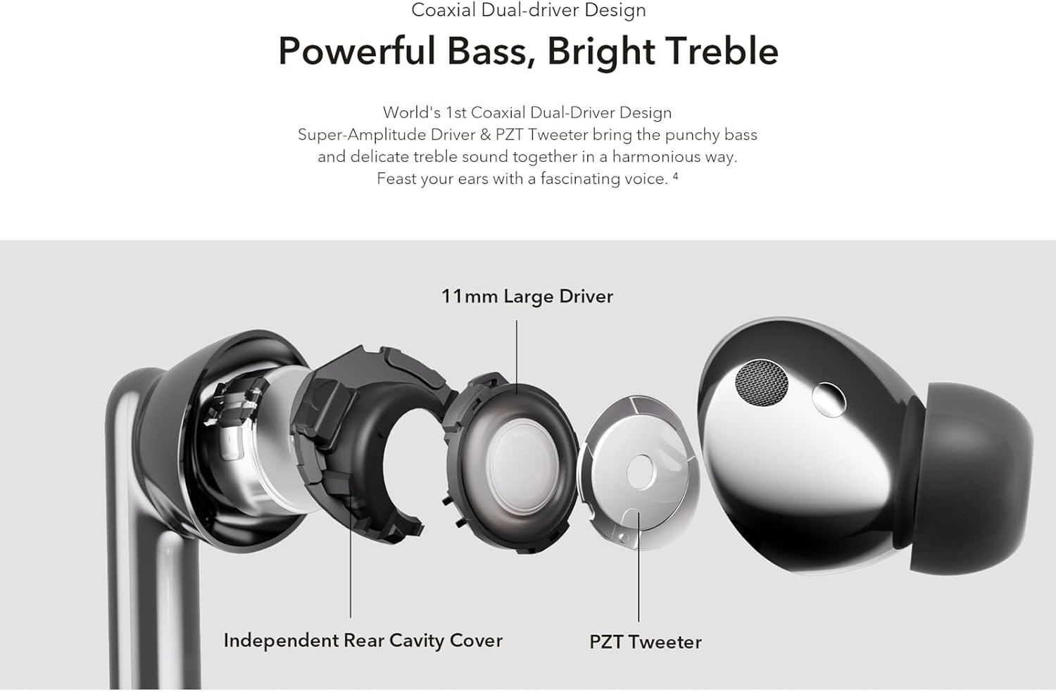 Dual Driver Design: The Honor Earbuds 3 Pro are equipped with the world’s first coaxial dual driver design with dynamic 11 mm diameter driver and piezoelectric ceramic tweeter, providing exceptional sound quality and deliver rich, fine and clear sound details. This design perfectly covers the frequency range audible to the human ear and provides an overall natural and balanced sound experience.