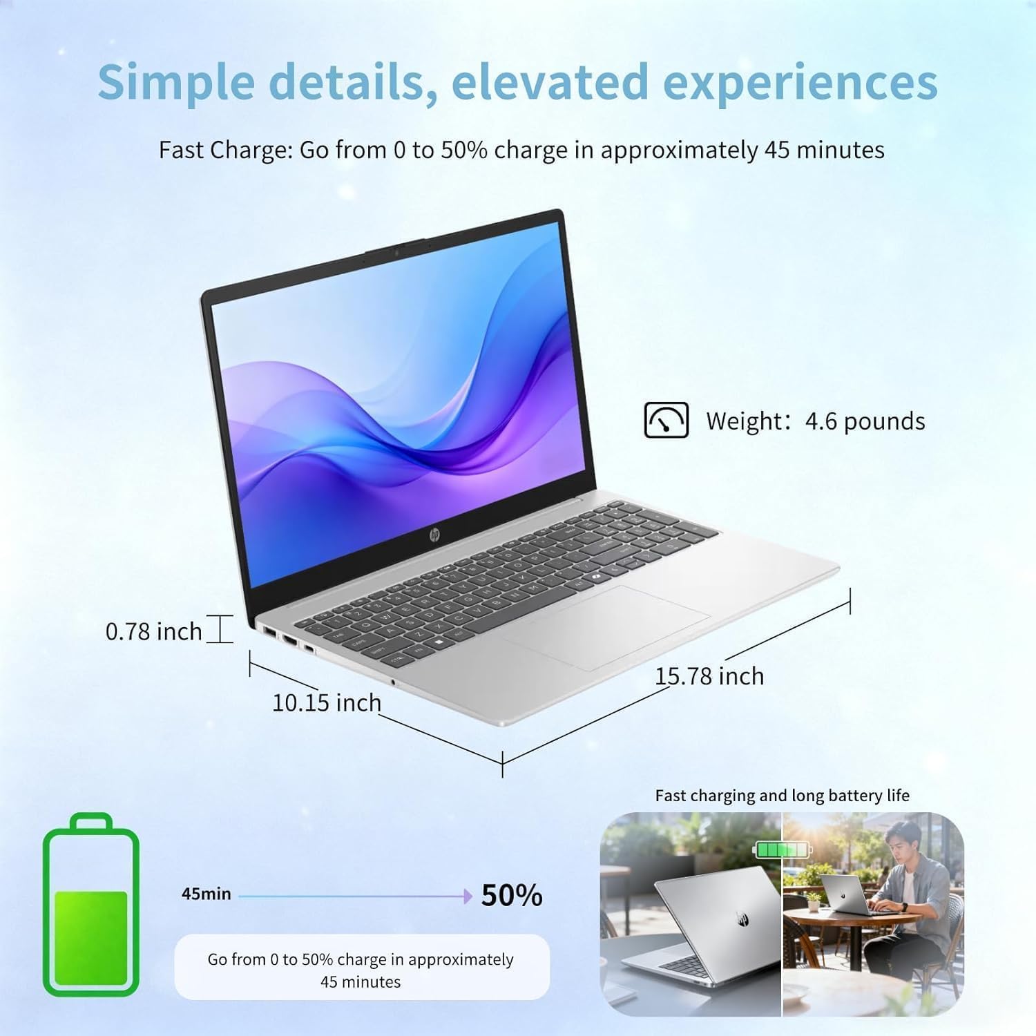 Work All Day, Charge in Minutes — With up to 7.75 hours of battery life and HP Fast Charge (50% in approx. 45 minutes), this HP laptop keeps you ready to go—whether you’re at home, on the road, or between meetings.