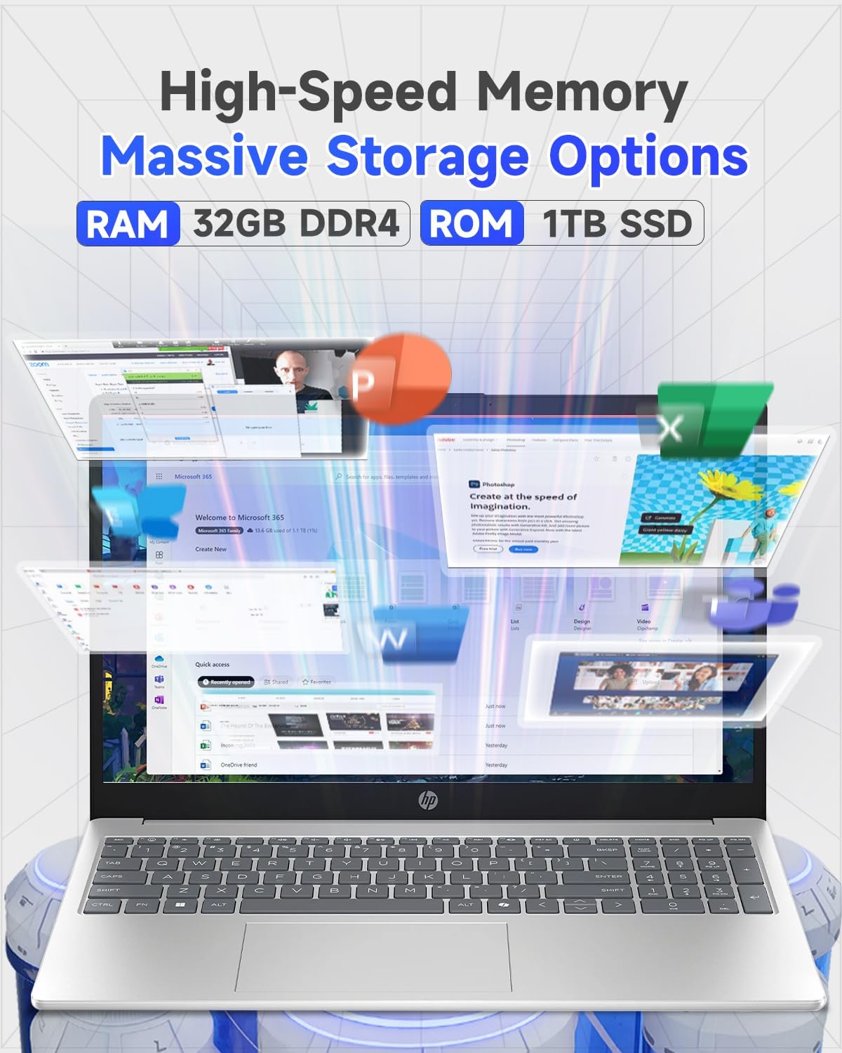 ✔【 Ultra-Fast Storage: 32GB RAM + 1TB SSD】Laptop Computer run multiple applications without lag and store massive files effortlessly. 32GB high-speed RAM ensures flawless multitasking, while the 1TB PCIe SSD delivers rapid boot-ups, file transfers, and ample space for projects, videos, and photos