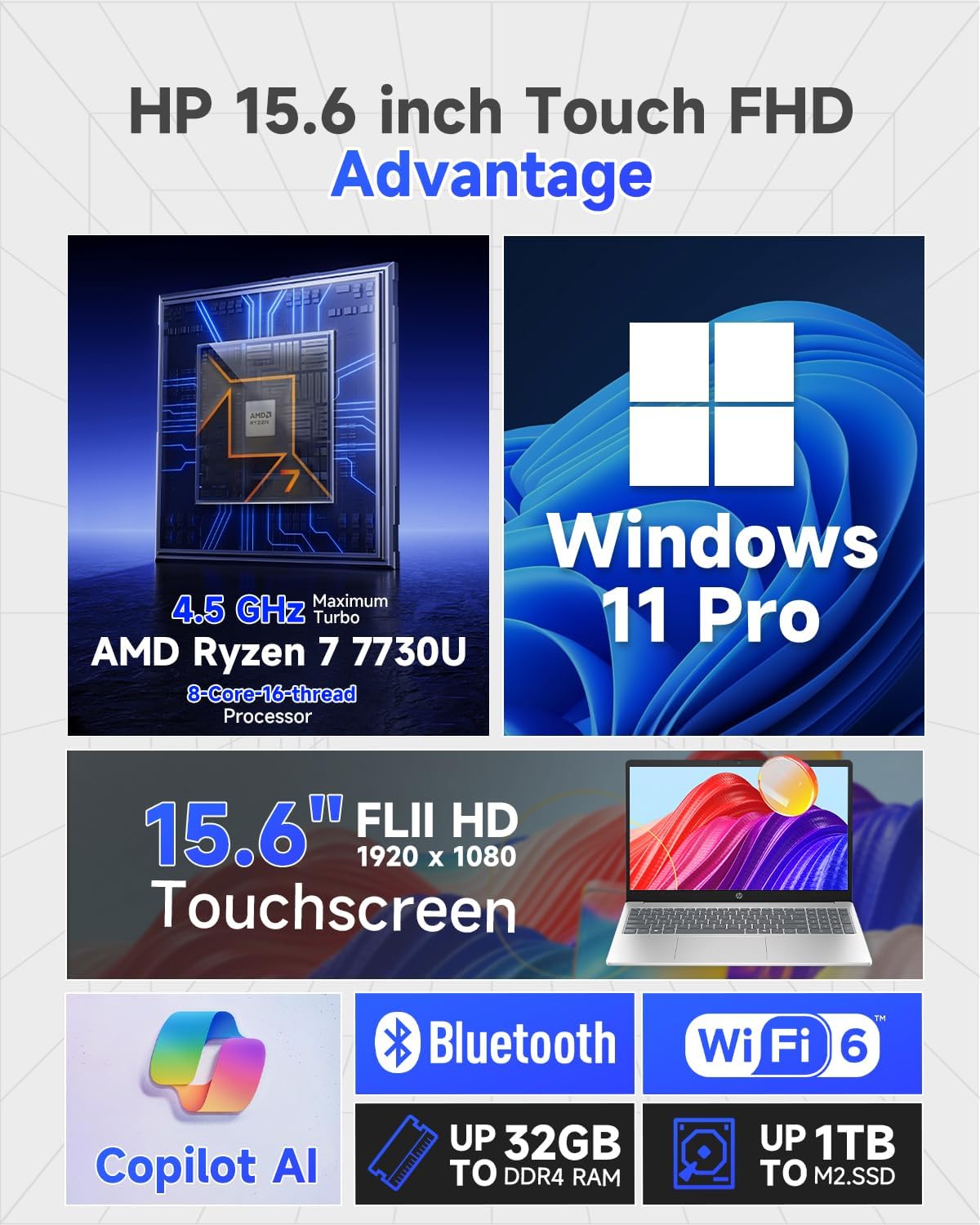 1 review for HP 2025 15.6″ Touchscreen Business Laptop, AMD Ryzen 7 7730U (8-Core, Beats i7-1355U), 32GB RAM 1TB SSD, Numeric Keyboard, Copilot Key, Wi-Fi 6, Windows 11 Pro, w/AI Voice Recorder