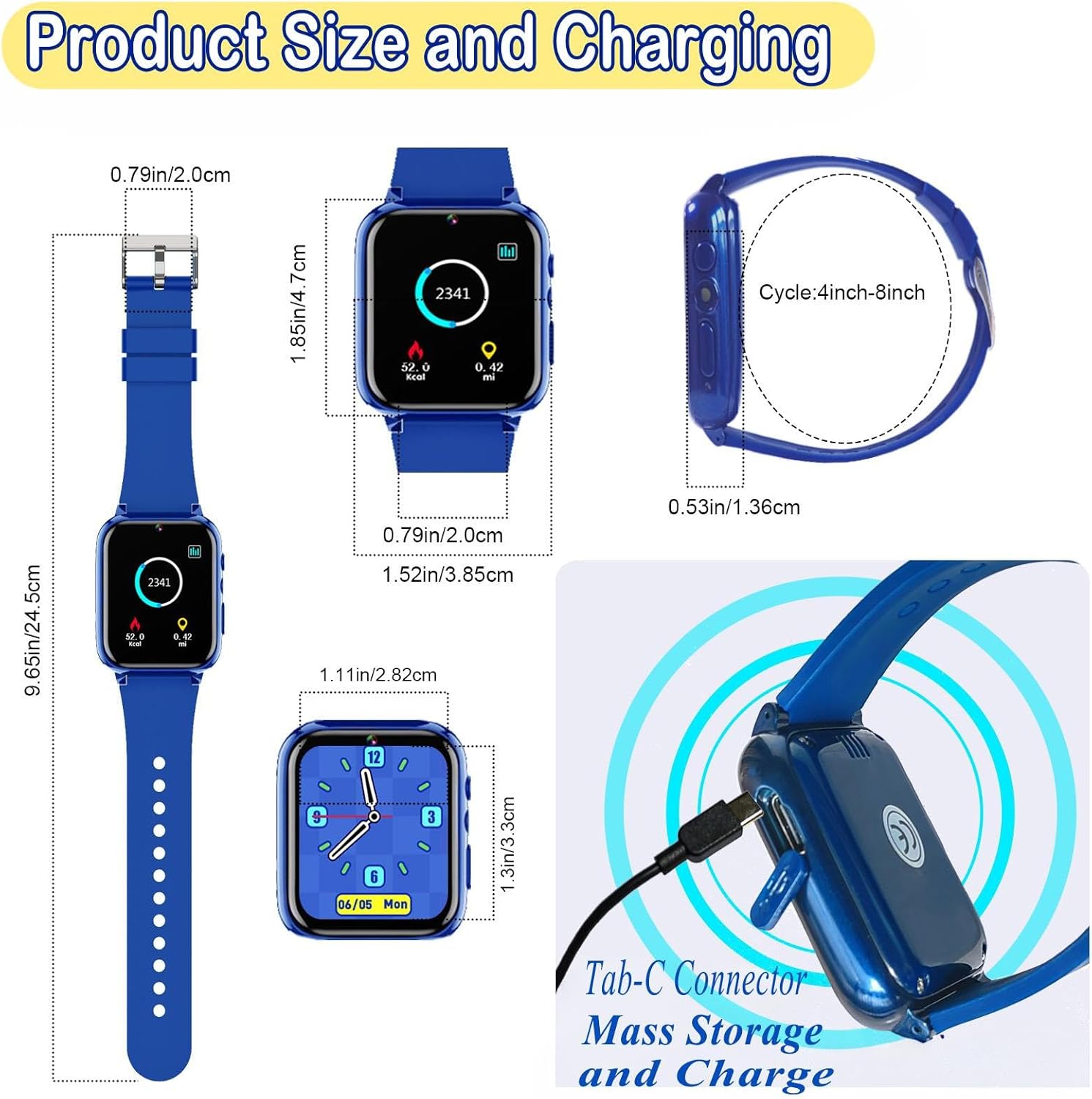 iCHOMKE Smart Watch for Kids, Girls Boys Smartwatch with 26 Games Camera Video Recorder and Player, Pedometer Calendar Flashlight, Audio Book etc.,Toys Gifts for 4-12 Years Children (Blue)