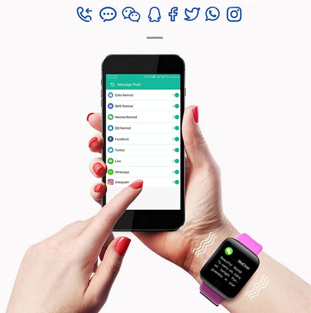 ⭐ Smart Notifications: In addition to tracking, this smartwatch connects to the app, available for all smartphones so you can receive incoming phone messages, calls, and more. The Smartwatch offers Bluetooth connectivity. Get all your messages and notifications sent straight to your wrist