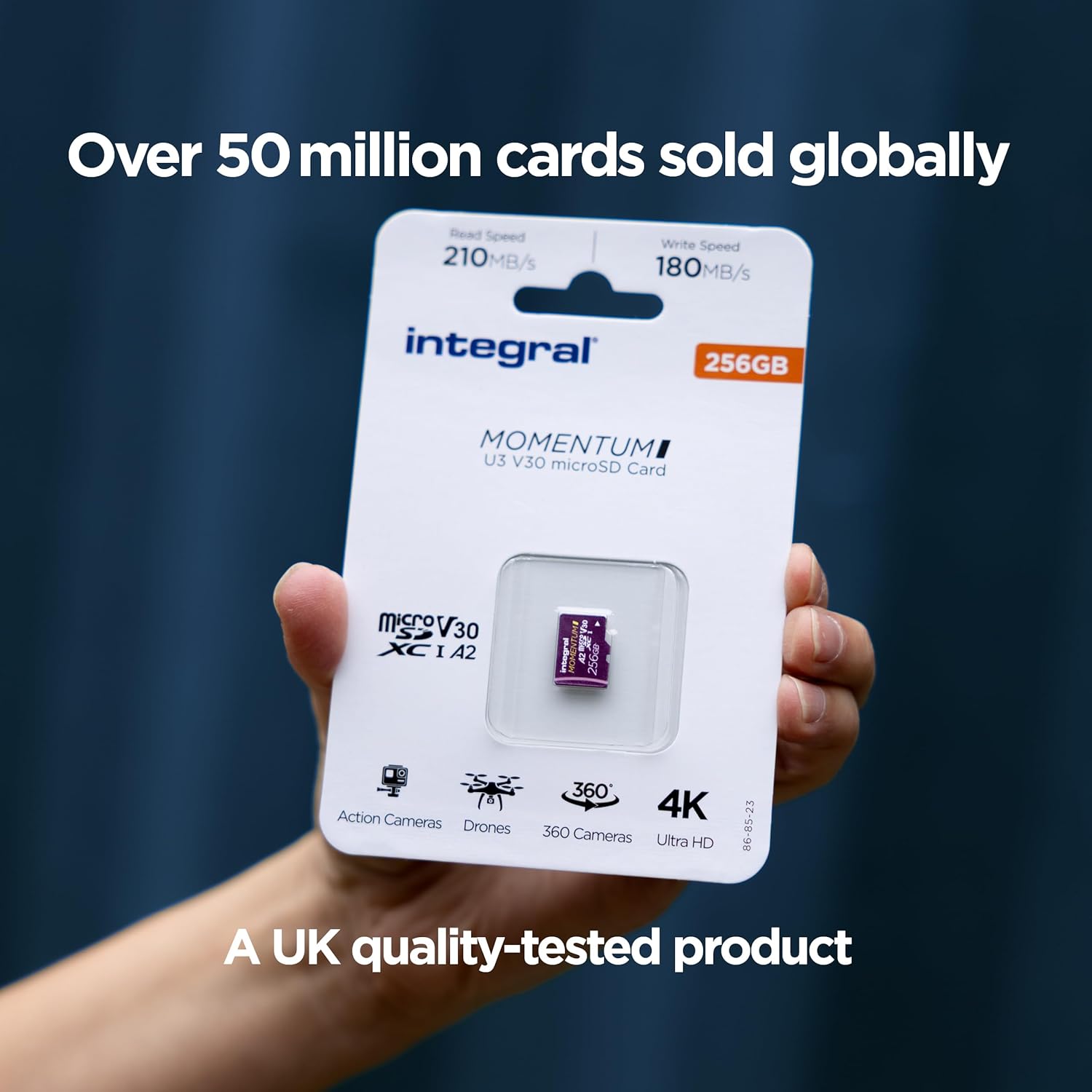 Be the first to review “Integral Momentum I 256GB microSDXC Card – UHS-I, Up to 210MB/s Read, 180MB/s Write, V30, U3, A2, CL10-4K/5K UHD for GoPro, DJI Drones, Action & 360 Cams – Waterproof, Shockproof, Rugged”