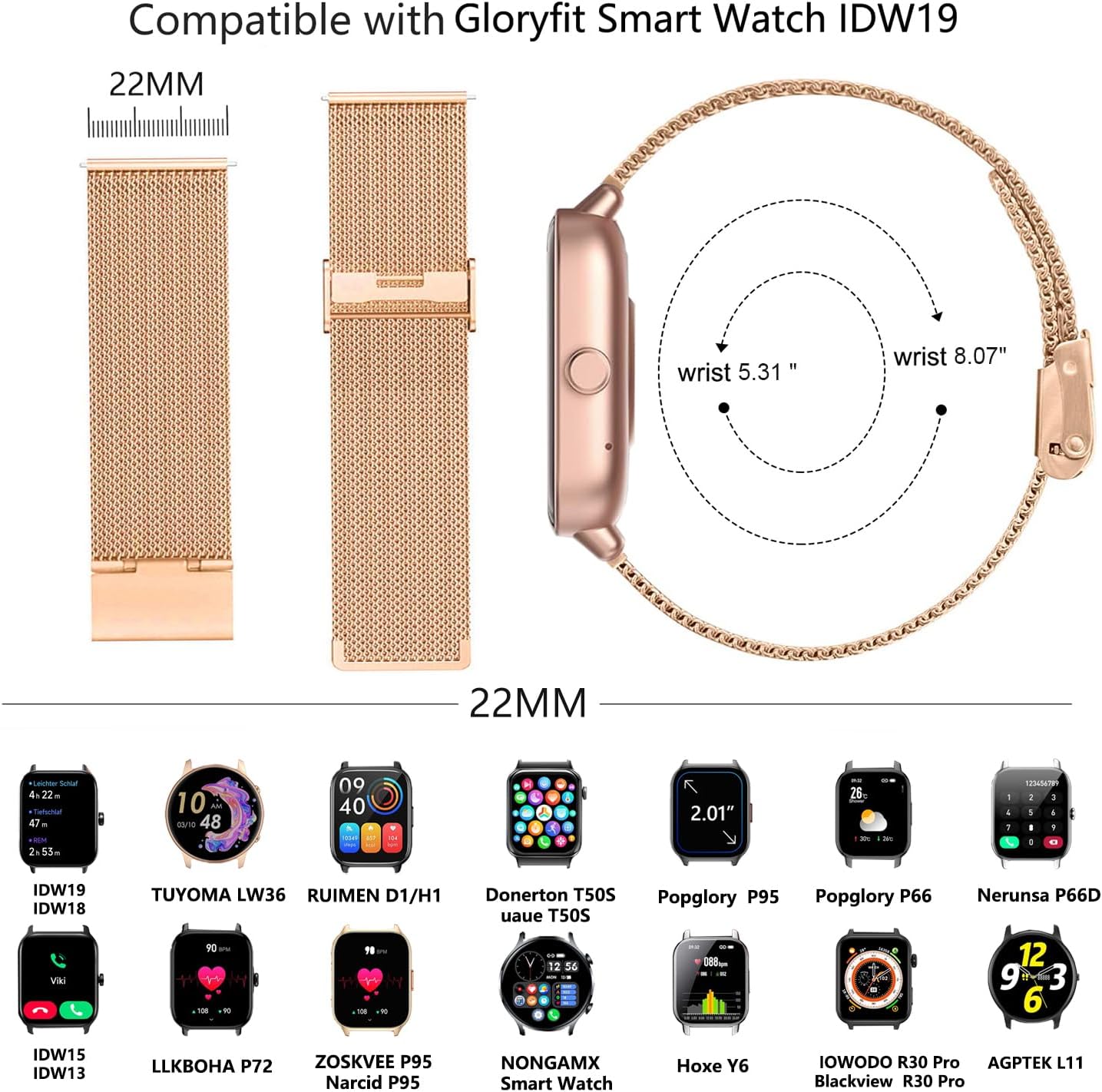 【Compatible Models】 Suitable for Gloryfit 22MM Original Models of All Brands Smart Watch IDW19 IDW18 IDW16 Veryfit IDW13, Smart Watch TUYOM LW36, Ruime Smart Watch H1/D1, Smart Watch T50S, Smart Watch P66 P66D P72 P95, NONGAM Smart Watch. Y6 Smart Watch. KALINC Smart Watch, Smart Watch R30PRO, Smart Watch YB54, G39, AGPTE LW11 Smart Watch etc, and other watches with 22mm lug width. (Please check the width of the smart watch connection before purchasing)
