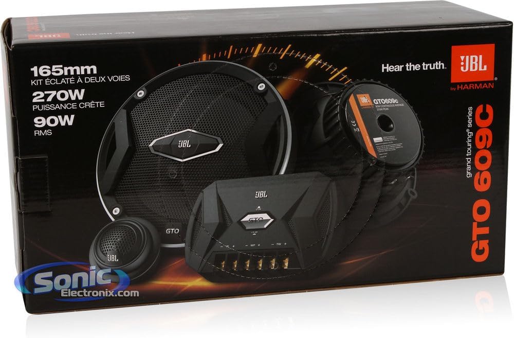 JBL Premium 6.5-Inch Component Speaker System – Set of 2 JBL engineers designed the GTO 609C component speaker to produce strong, clear sound from a head-unit or amplifier capable of delivering up to 270 watts of power. This makes the GTO 609C an ideal match to systems powered with head-unit or factory-amplifier power levels. Even better, the speaker matches many of the GTO Series amplifier combinations. As a result, it can keep up with systems that feature one or more subwoofers and satisfy high-fidelity audiophile listeners. And its great power-handling specifications also increase reliability over the lifetime of the speaker. The GTO 609C’s Plus One carbon-injected cones provide more overall speaker-cone area than other cones in its class. With an effective increase in cone area, the speaker radiates more air. Also, its carbon-injected cone material produces a lighter and stiffer cone. The result is a better low-frequency response and a greater ability to make those important musical notes that people often associate with larger speaker sizes.