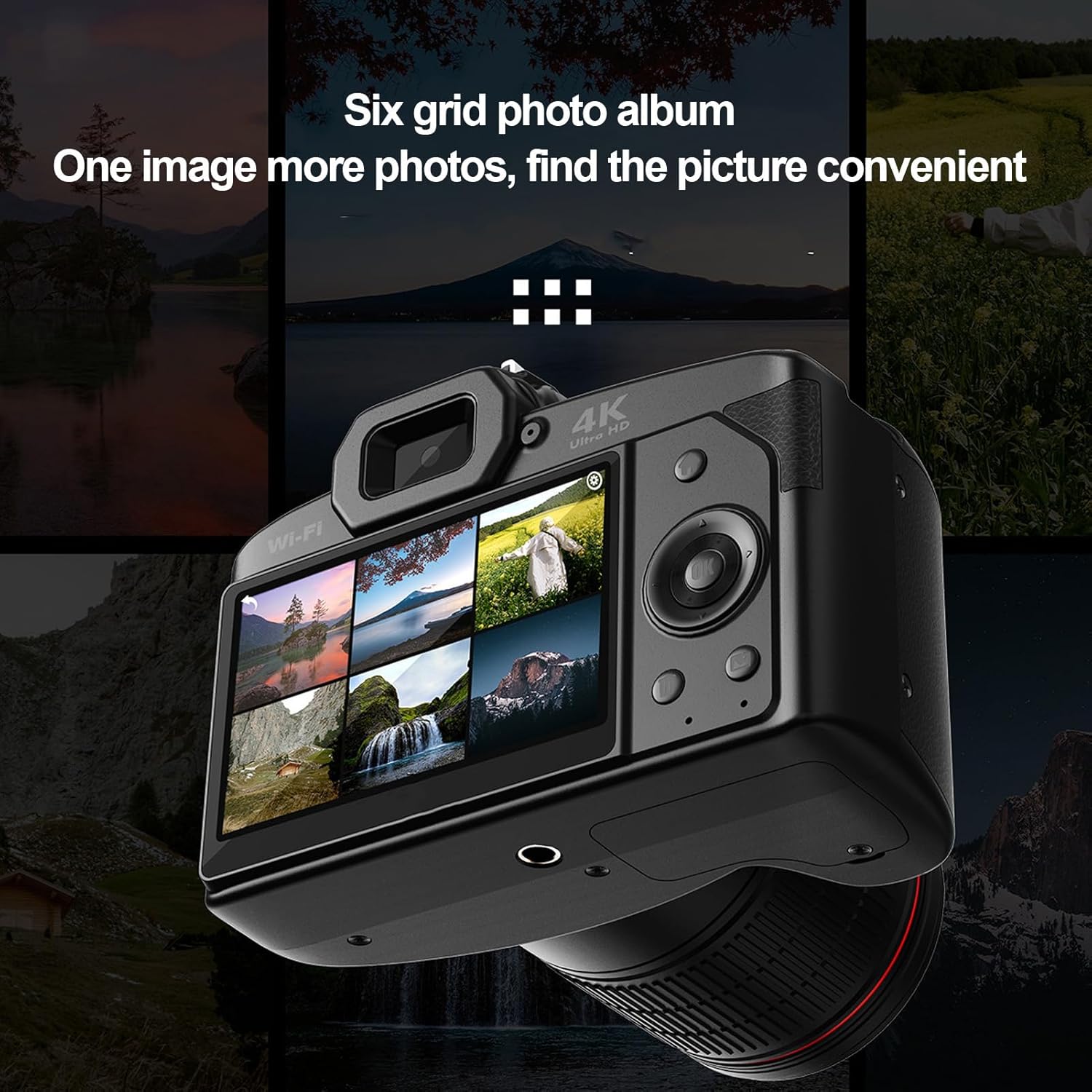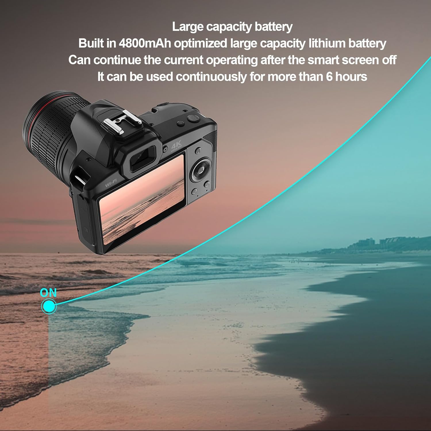 EASY INTERCONNECTION: 4K digital camera supports Cordless Fidelity connection to cell phone and can be interconnected through APP, which is convenient for transferring photos, remote control of video recording and photo taking, enjoying a more convenient operating experience.