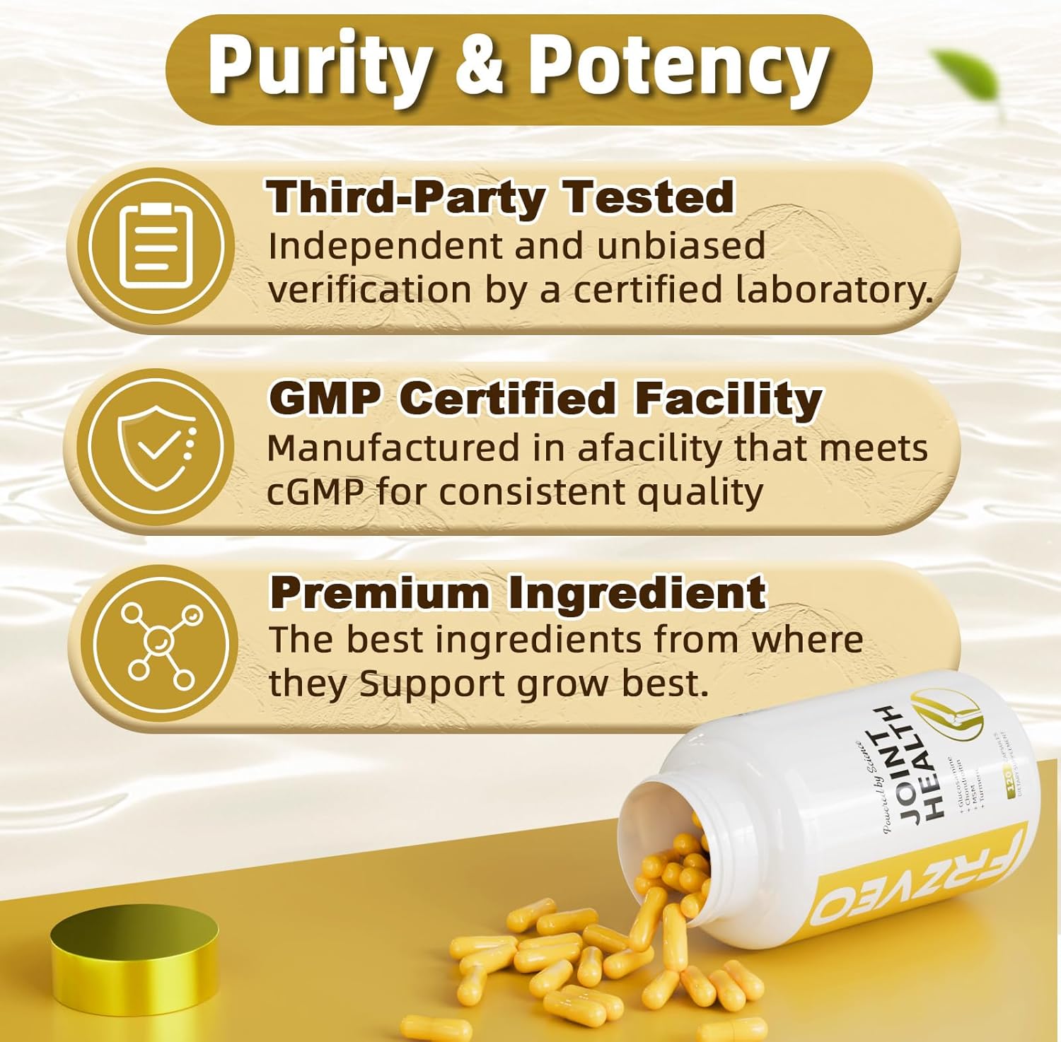 Enhanced Mobility & Comfort: Our advanced joint support formula is designed to keep you moving with ease. Experience the power of Glucosamine, Chondroitin, MSM, Turmeric, Boswellia, Bromelain, and Quercetin for optimal joint care.