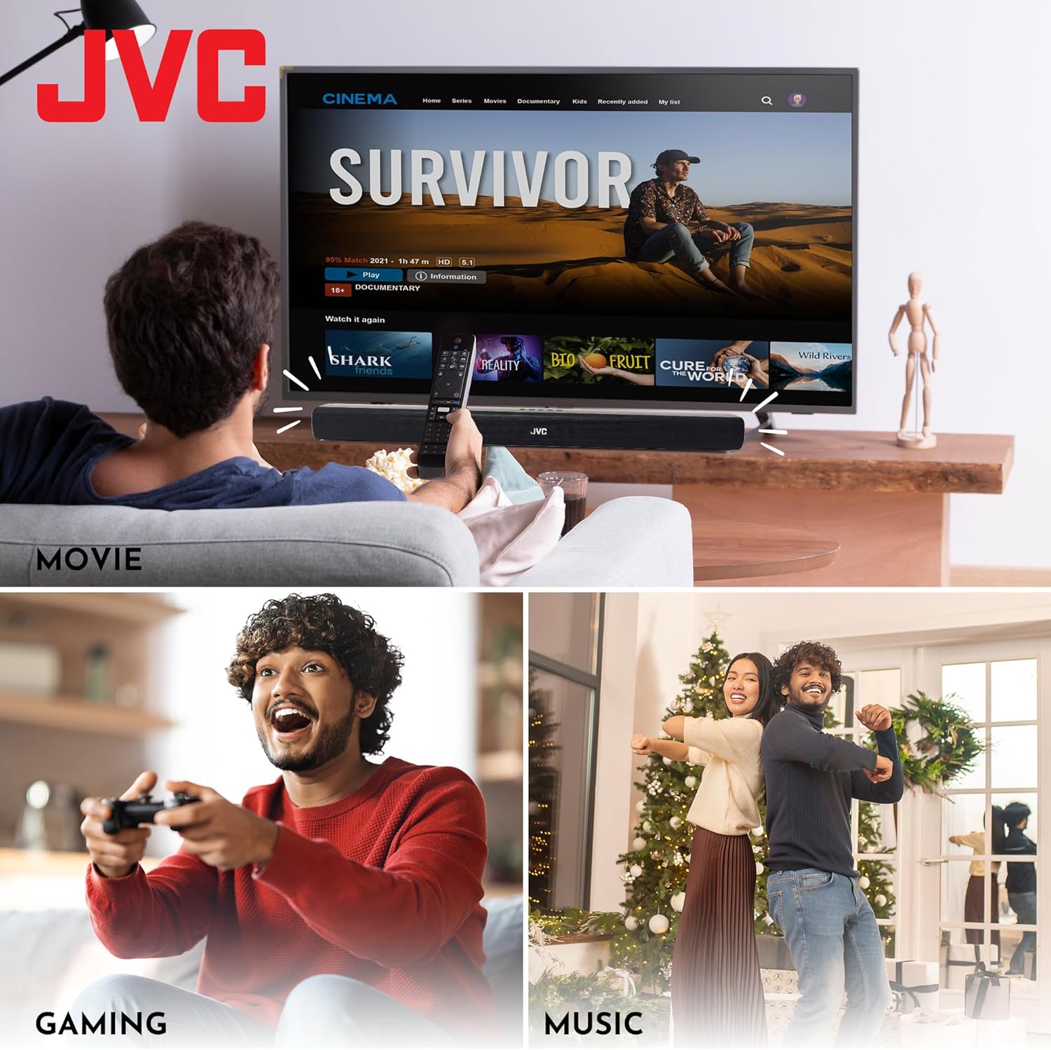 Enhanced Audio: Enjoy high-quality audio with 30W output power for a immersive TV and movie-watching experience.