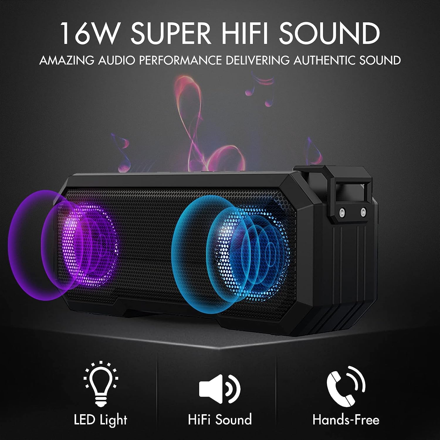 KASTWAVE Portable Bluetooth Speaker,IPX7 Waterproof Wireless Speaker with 16W Loud Stereo Sound, Outdoor Speakers with Bluetooth 5.0, 12H Playtime