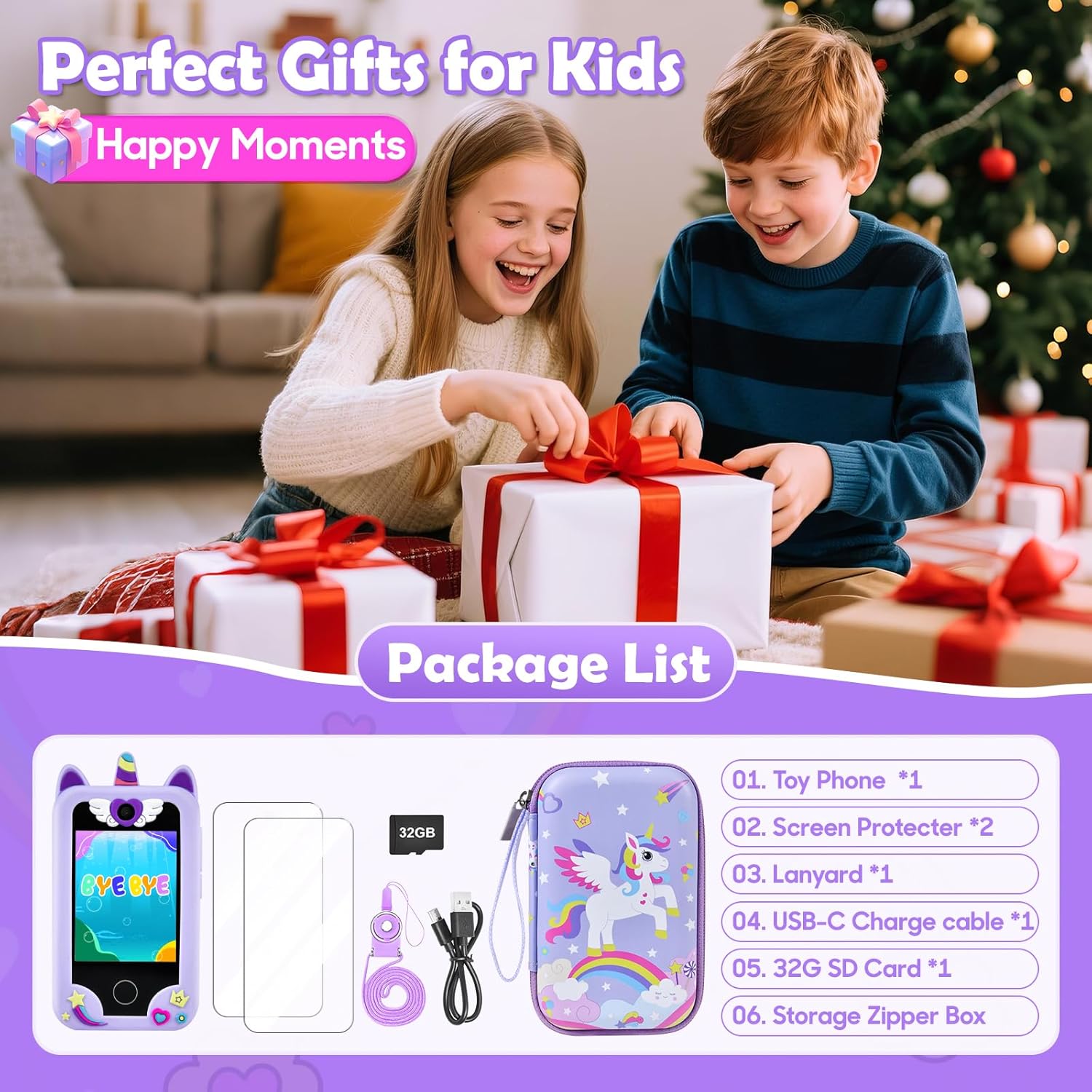 āØćThe Perfect First Phone for Young KidsćDesigned for kids aged 3-12 who want smartphone-style fun, this Ideal gift complete set includes: phone, protective case, lanyard, USB cable, 32GB memory card, and protectors (EVA bag in Deluxe Kit). The 600mAh battery ensures long-lasting play. It’s the safe, parent-approved alternative that lets them feel like mom and dad, making it a hit for birthdays, Christmas, or rewards.