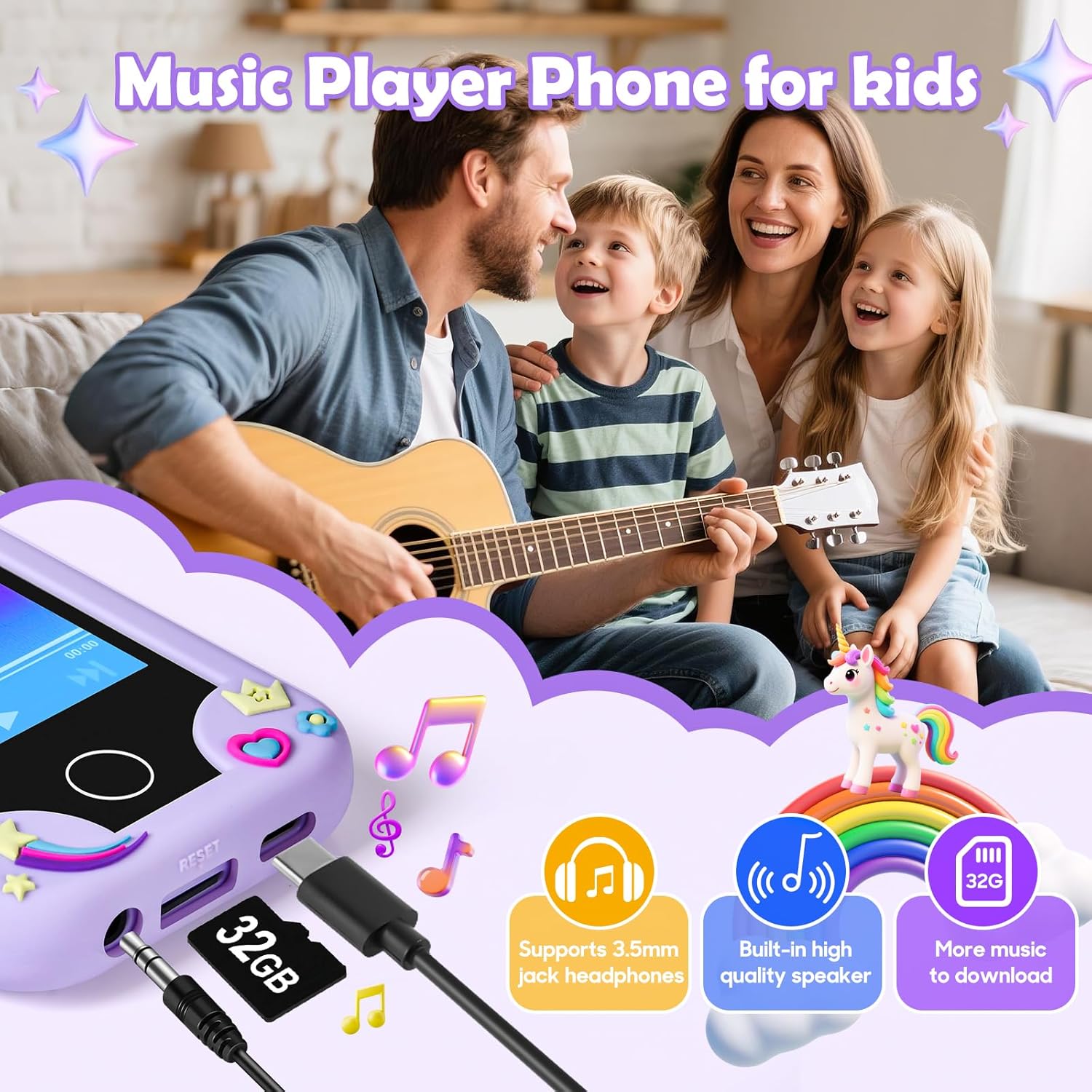 š®ćBalanced Play & LearningćThis phone for kids 3-5 packed with 44 educational games, this phone turns leisure time into a brain-boosting session, developing logic and coordination after school or on long trips. It also serves as a story and music companion with 10 audio tales and an MP3 playerļ¼support 3.5mm headphones jack), while Parent Mode helps maintain a healthy play-learning balance.