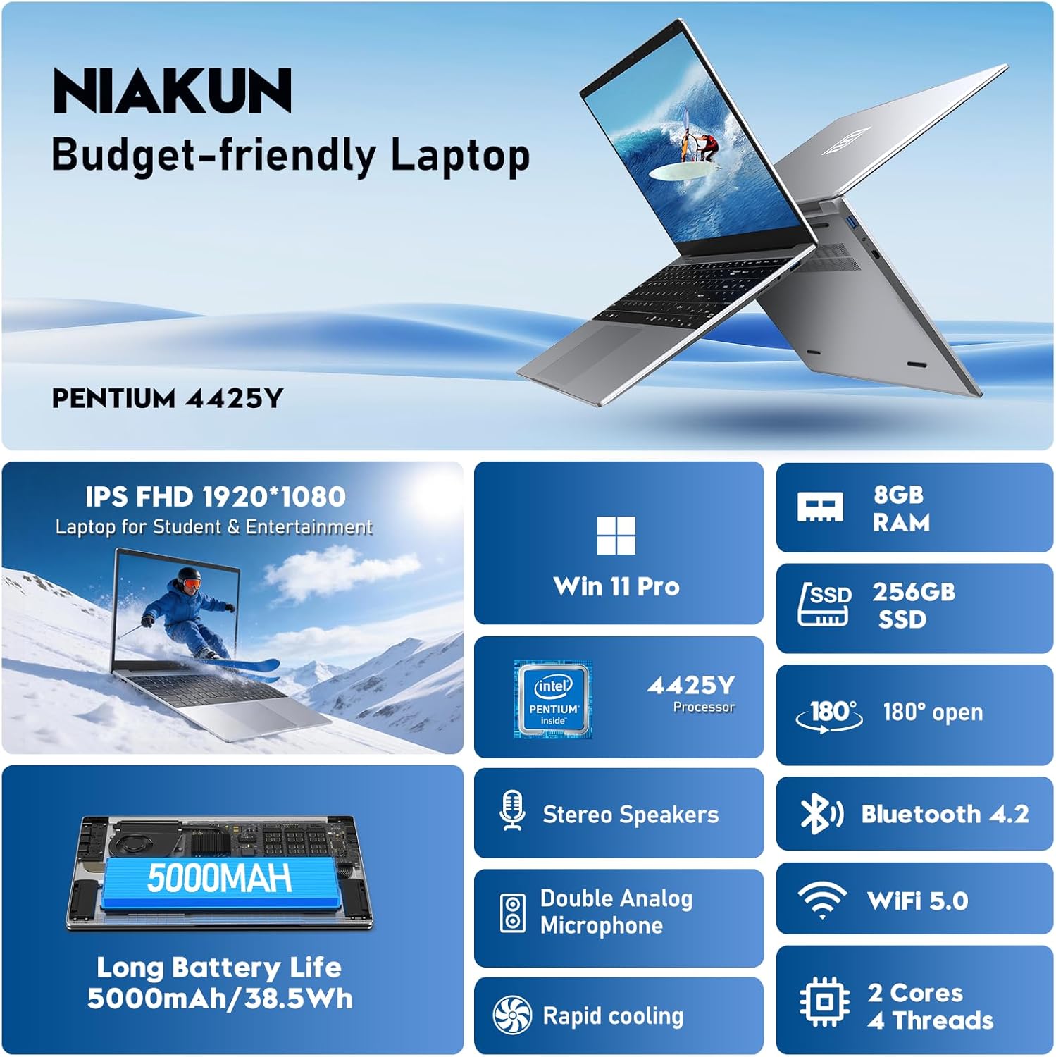 NIAKUN Light in weight Laptop pre-installed Windows 11 Pro. Our laptop is suitable for daily user、students、editor、gaming lover.
