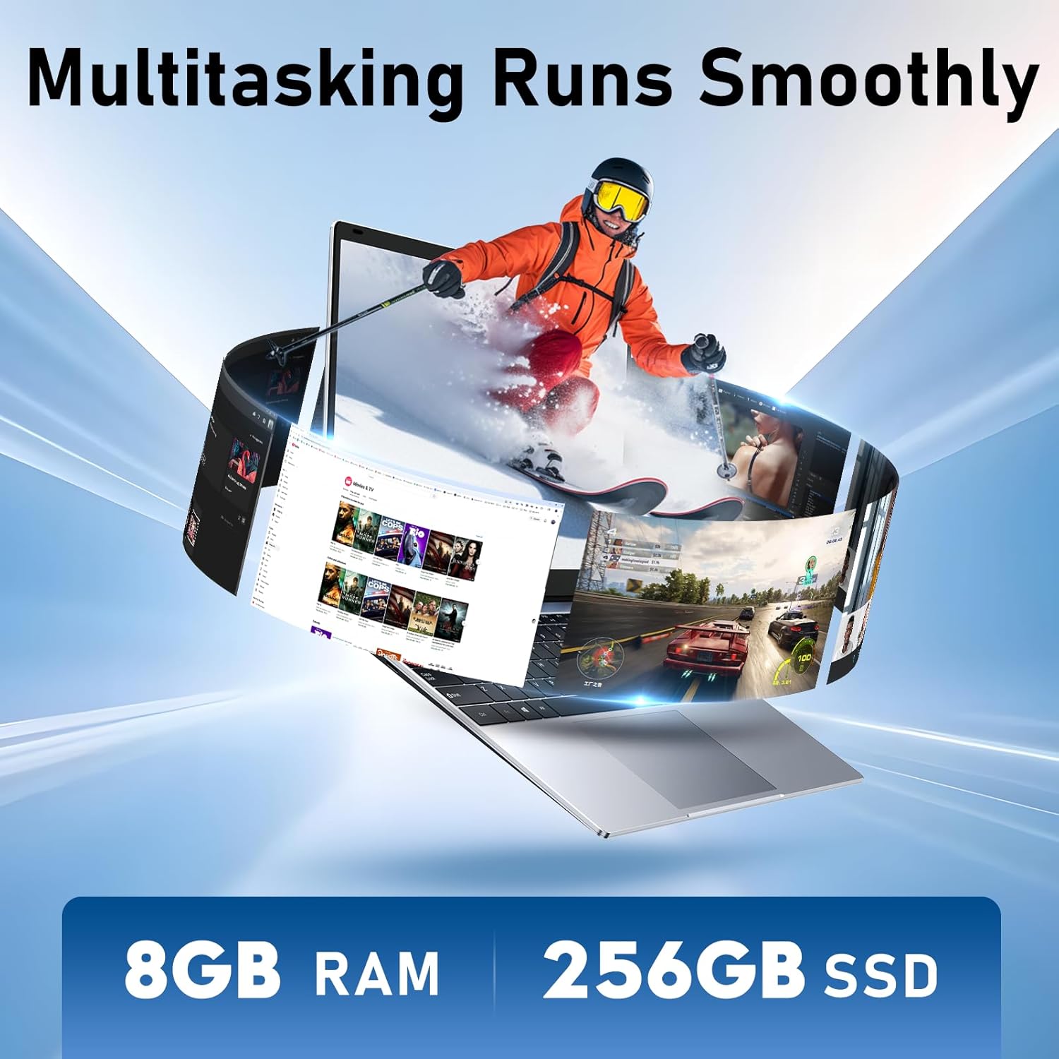 【Powerful RAM & Storage for Demanding Computer Users】8GB of RAM and 256GB SSD deliver fast performance, quick boot-ups, and smooth multitasking—ideal for demanding tasks on this laptop computer.