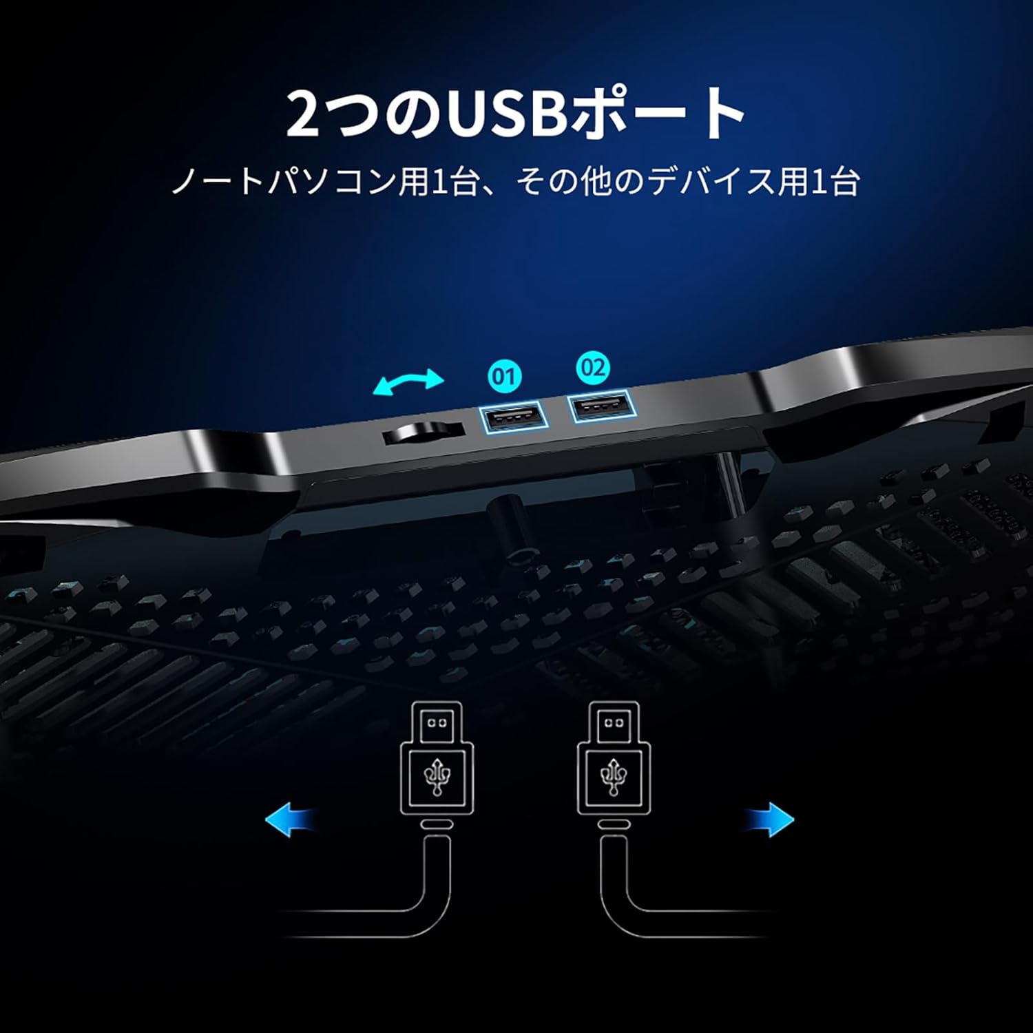 The computer cooling pads for laptops are equipped with 5 turbo fans (one small central fan and two larger side fans on each side) combined with a metal mesh design, delivering strong airflow to effectively cool your laptop.