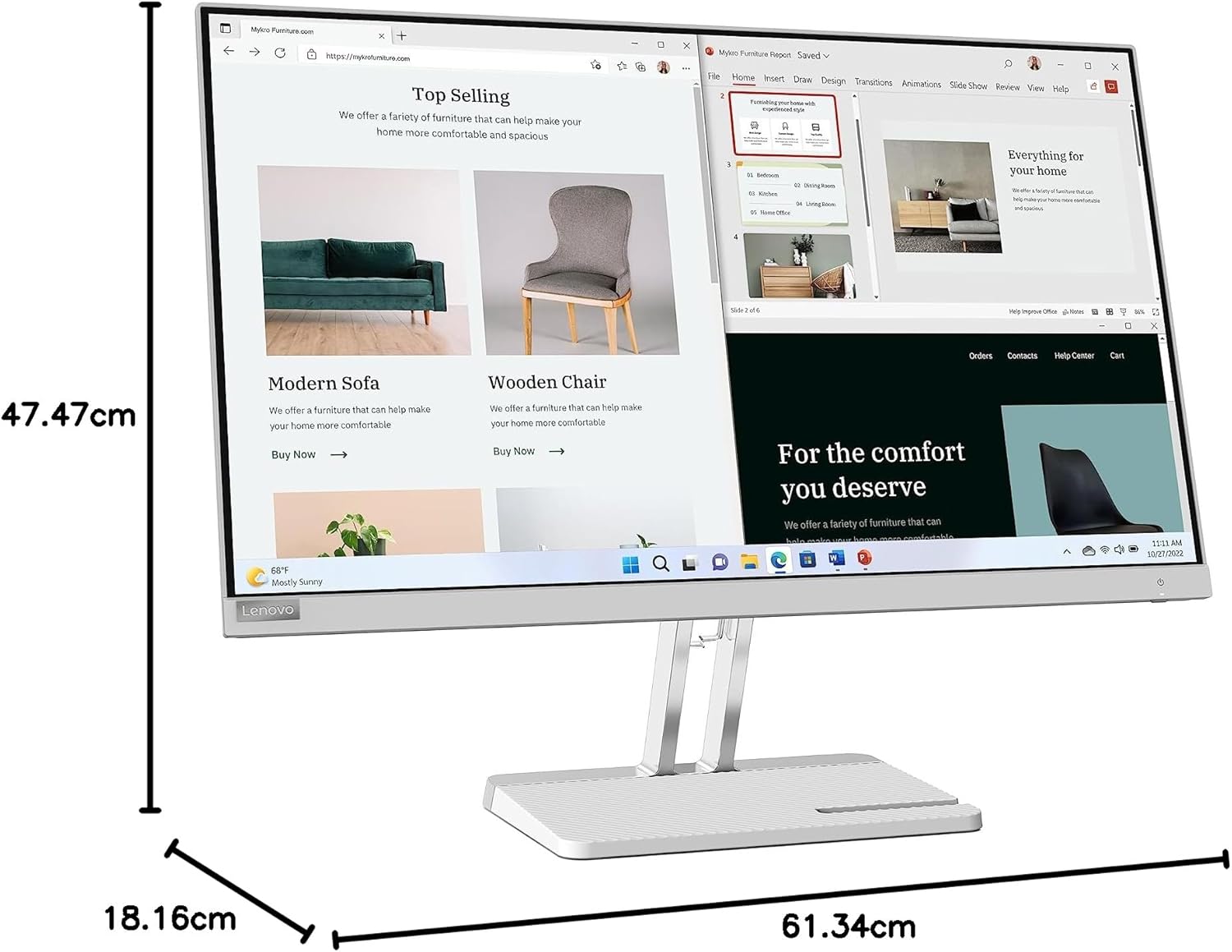 Lenovo L27e-40 27 Inch VA FullHD 100Hz Anti-glare Monitor With HDMI, VGA, AMD FreeSync,Tilt Stand-Cloud Grey