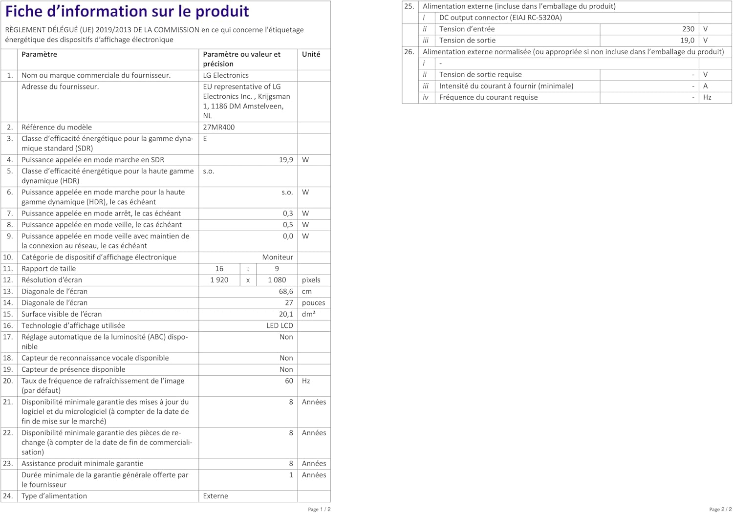 LG 27MR400-B Monitor PC 27″ [27] 1920 x 1080 Pixel Full HD Nero (27 FHD IPS 100HZ MNTR 1920X1080 – 16:9 5MS 1300:1 HDMI/VGA/HEADPHO)