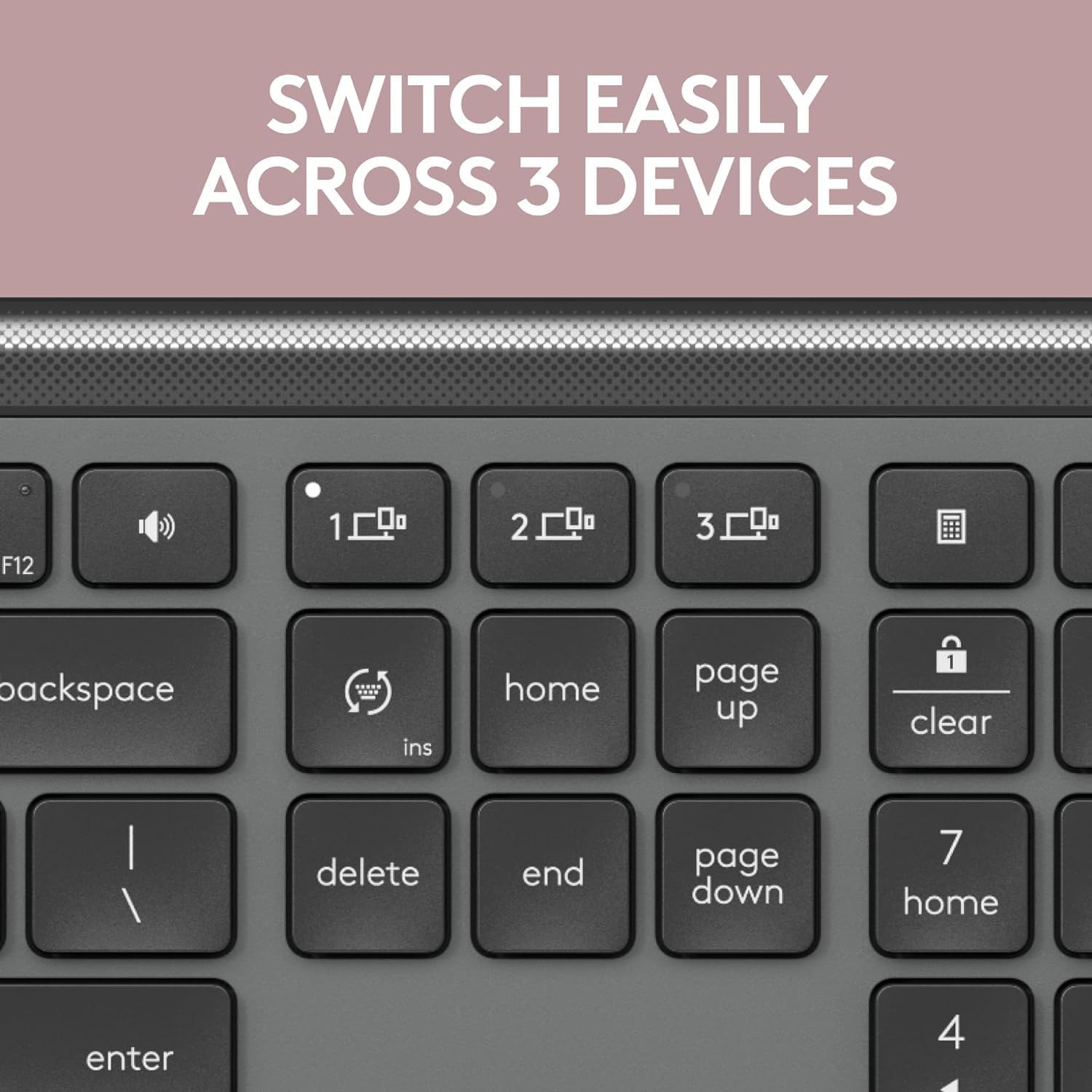 Switch Typing Between Your Computer, Tablet or Phone: The Logitech Signature Slim Wireless Keyboard K950 lets you switch typing between three devices with a single tap – just like that