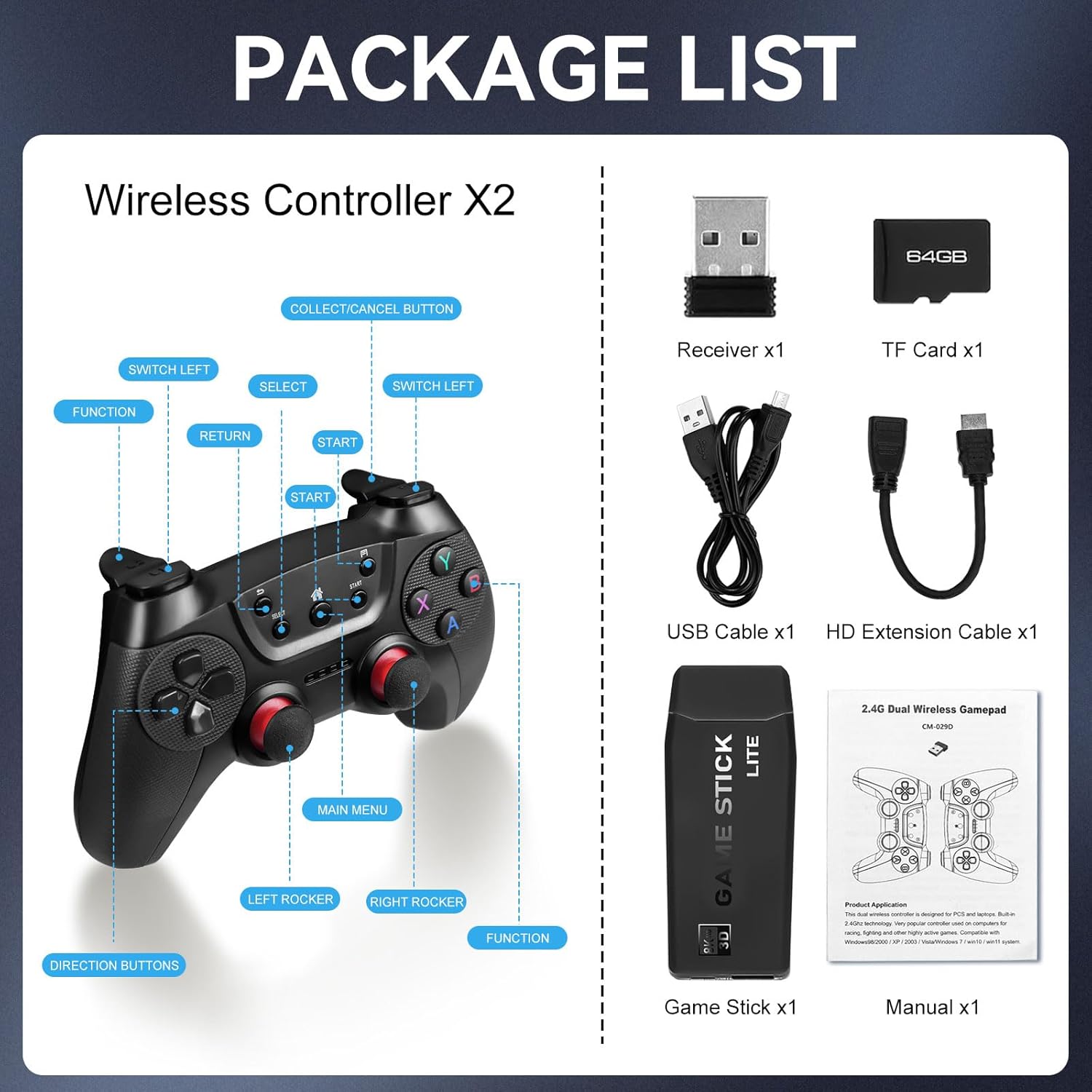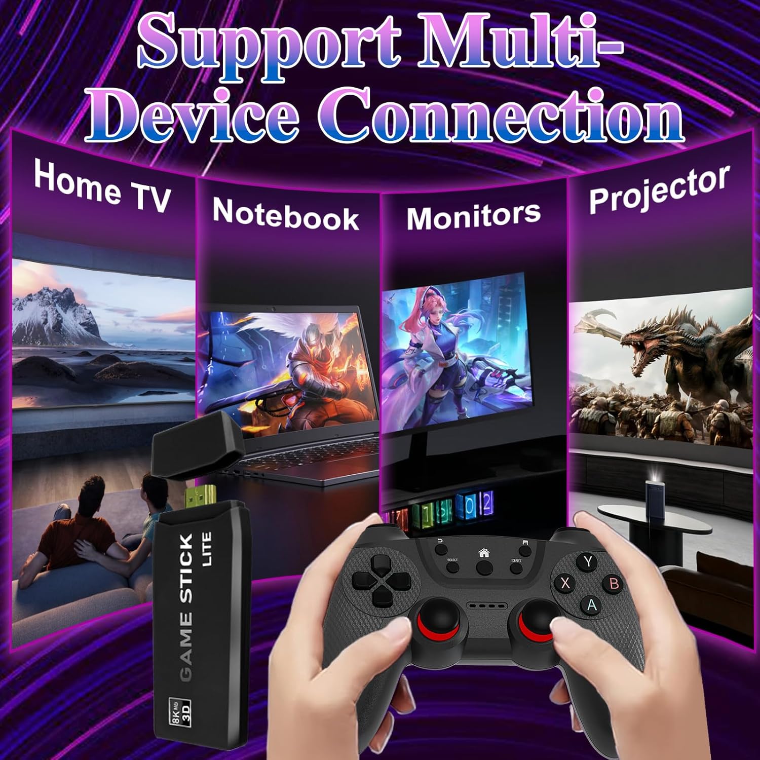 Ideal Gift for Holidays: This retro gaming console is a fantastic gift for birthdays, holidays, and parties perfect game stick for gifting. Its classic look and abundant games supported by game emulator appeal to both kids and adults. Kids gain coordination with this game stick; adults revisit nostalgia with the retro game console. Shared gaming on this retro game console strengthens connections, creating lovely memories during gatherings.