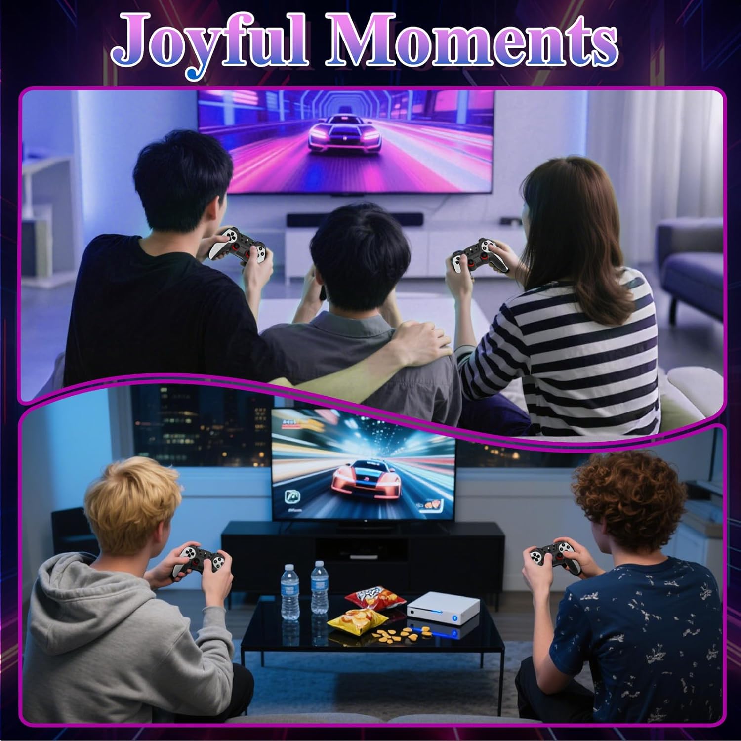 The gaming console is such a fun throwback! It comes loaded with 30,000+ classic games, so there’s always something nostalgic to play. Setup is super easy—just plug the 8K HDMI stick into the TV and you’re ready to go. The upgraded dual wireless controllers are responsive and comfortable, perfect for multiplayer nights. The graphics look surprisingly clean for retro games, and the whole system runs smoothly without lag. Amazing value and endless entertainment in one small device!