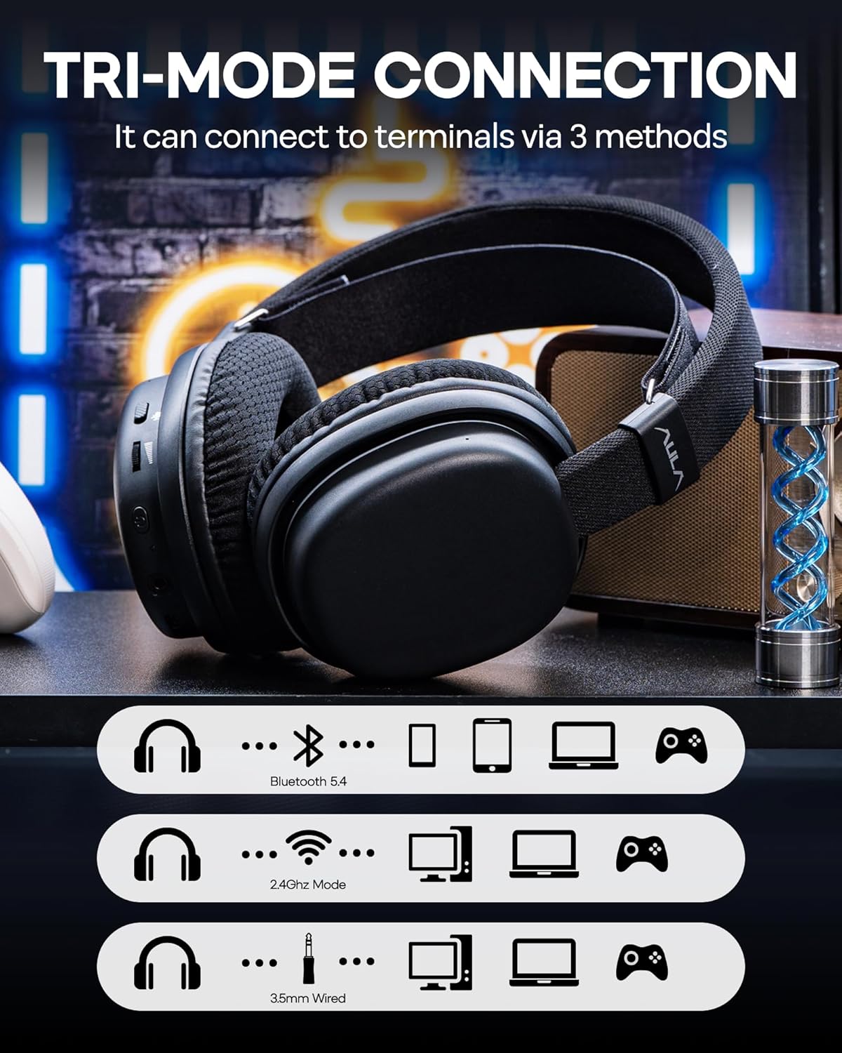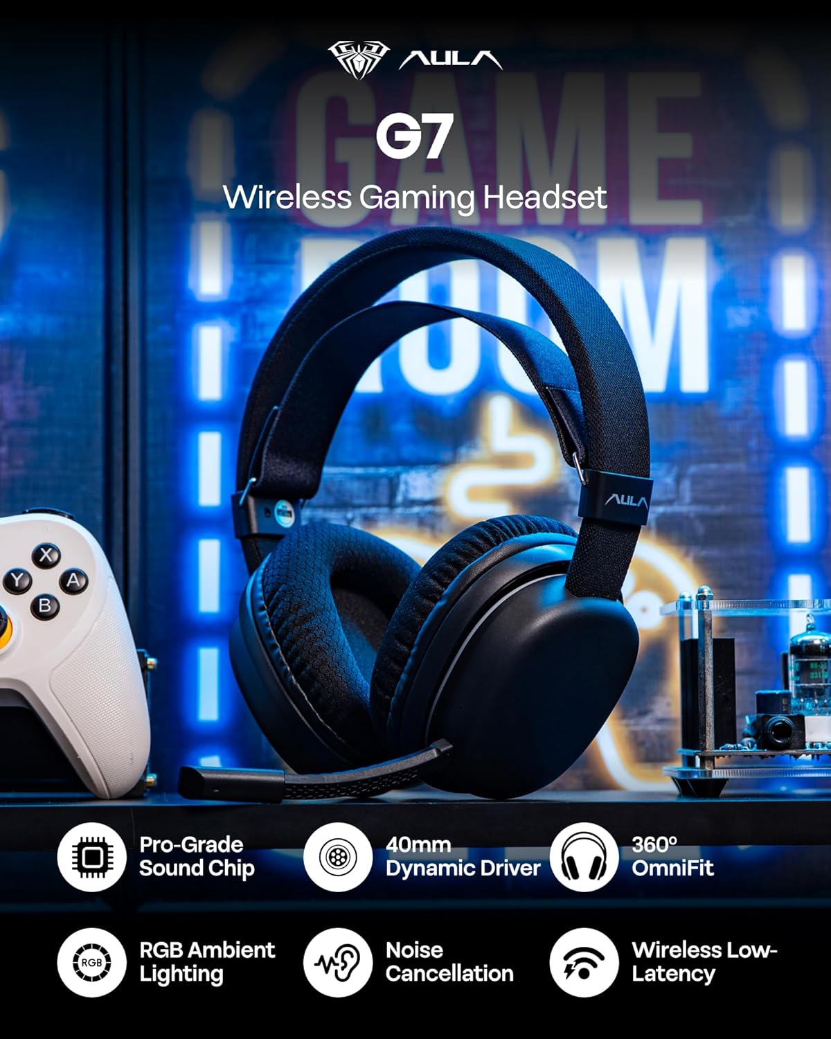 Pro-Grade Sound & Multi-Platform Compatibility: Delivers tournament-ready audio with neodymium 40mm dynamic drivers + composite diaphragm and a dedicated sound card; 360°OmniFit acoustic chamber dynamically contours to your head for stereo surround sound. G7 gaming headset is universally compatible with PC, Laptop, PS5/PS4, Switch, Phone, Tablet, and Xbox. (Note: Not compatible with Xbox in 2.4G mode. Bluetooth mode compatibility depends on whether the device has Bluetooth functionality. )