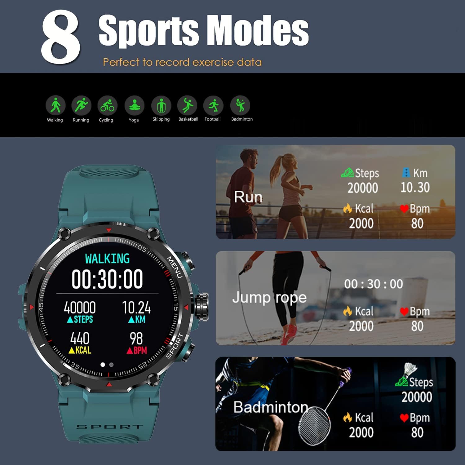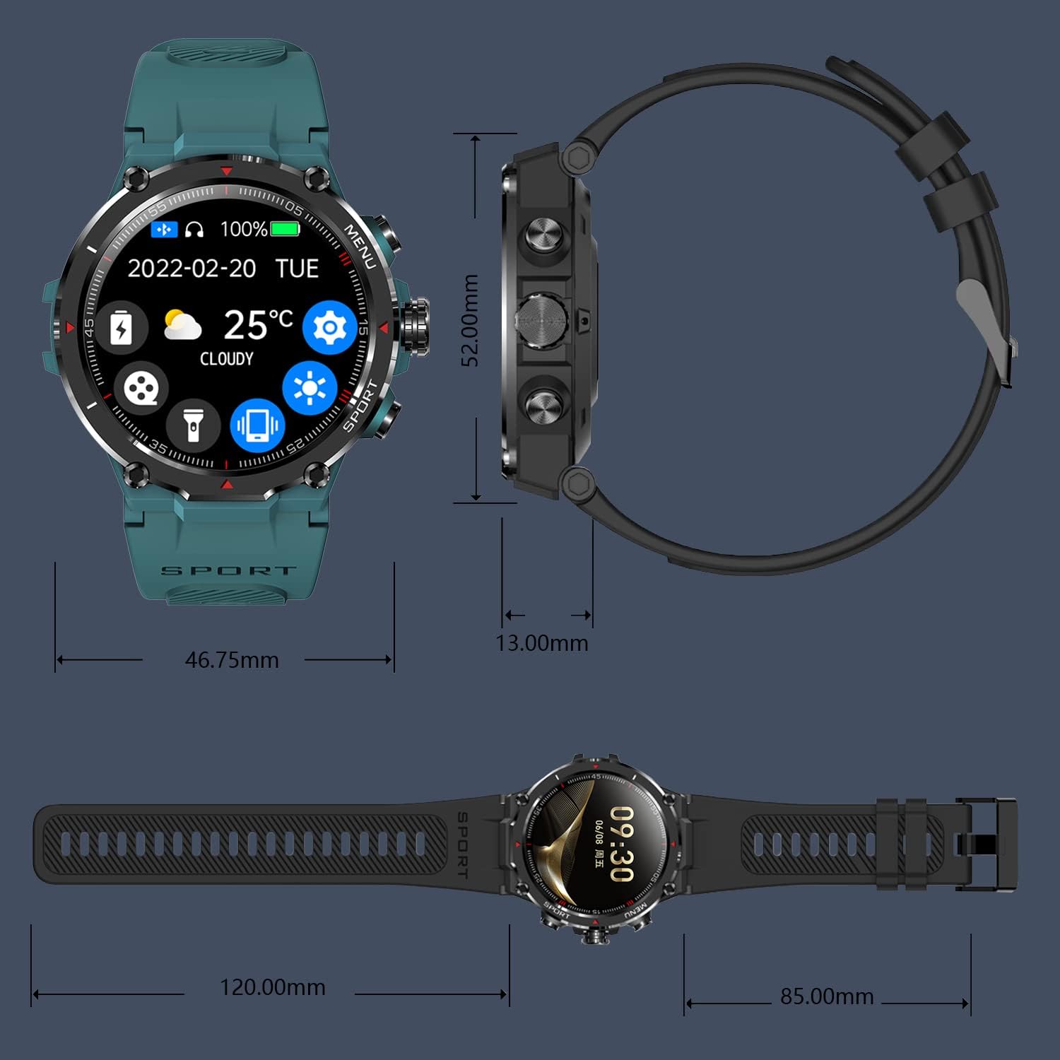 Military Grade Standard – Skykinger military smart watch with a Micro-blasted metal frame and titanium body,Has a 15 military grade certifications and can be used under the harsh environmental conditions, such as 70 ℃ heat resistance, -40 ℃ cold resistance; 120 hours resistance to humidity, 96 hours resistance to salt spray