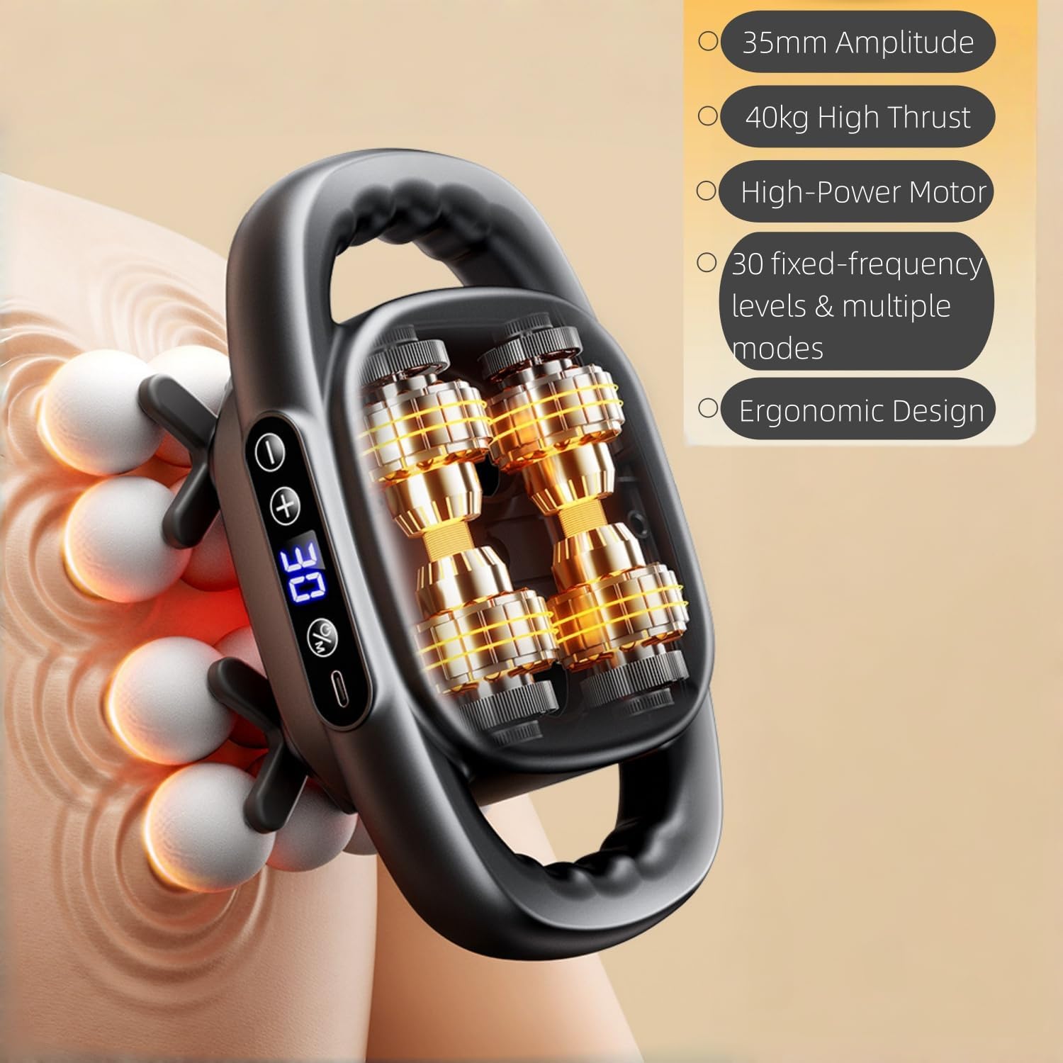【Ergonomic Design】Features an anti-slip grip with human-centric engineering, ensuring comfortable prolonged use while effortlessly targeting the neck, shoulders, lumbar spine, and limbs.