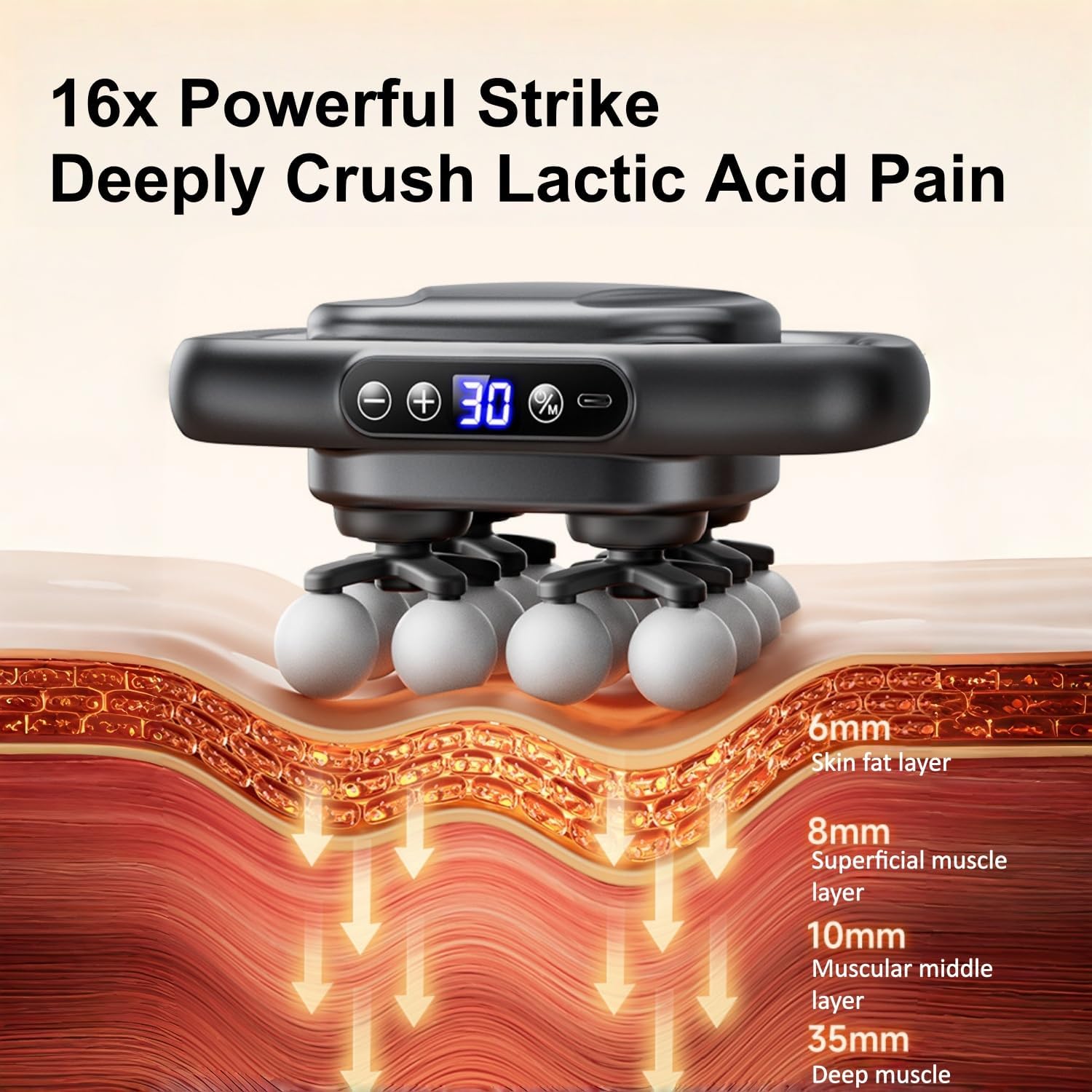 【Extended Battery Life · All-Scenario Ready】 2500mAh Battery + Type-C Fast Charging: 5-hour runtime for 16-head flagship (2-hour for 8-head base model), fully recharged in just 3 hours. Multi-Scenario Adaptability: Compact design easily targets shoulders, back, limbs, etc. Perfect for home, office, or post-workout recovery.