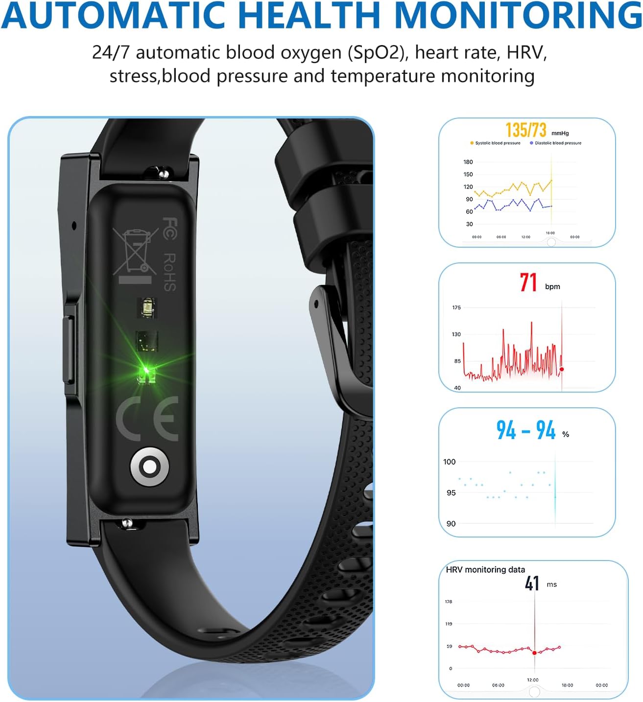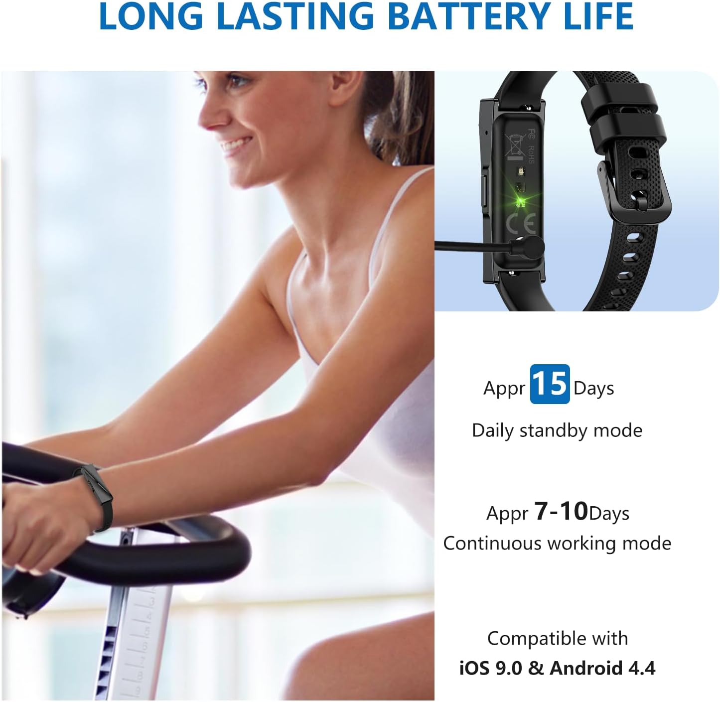 【24/7 Accurate Health Data】It is both a heart rate band and pedometer and a blood pressure smartwatch constantly records your health data. Monitor with sleep quality (deep, REM, light) and stress levels. Includes menstrual cycle monitoring.