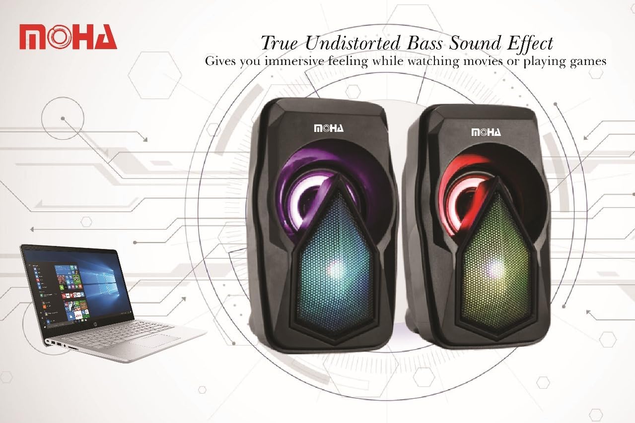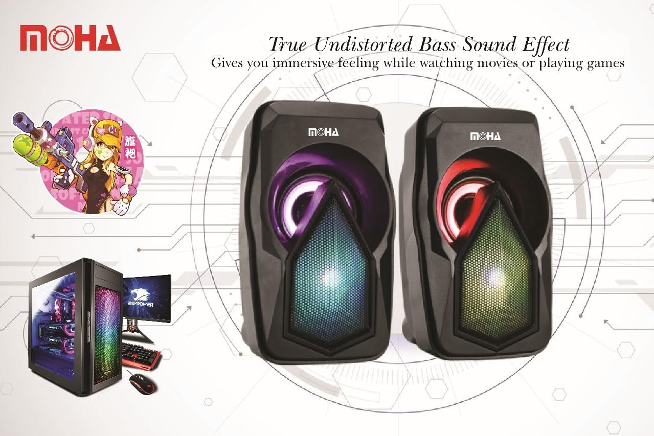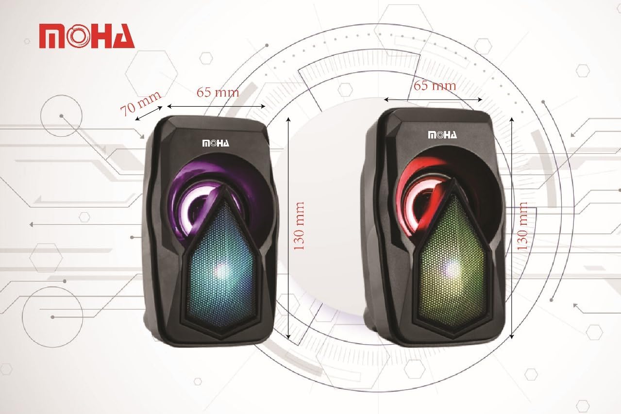 MOHA Portable Laptop/Desktop USB 2.0 Powered Multimedia Speaker with AUX Input, deep bass, LED Lights, 3.5mm Audio Input, Mini Stereo 2.0 RGB Gaming Speaker,