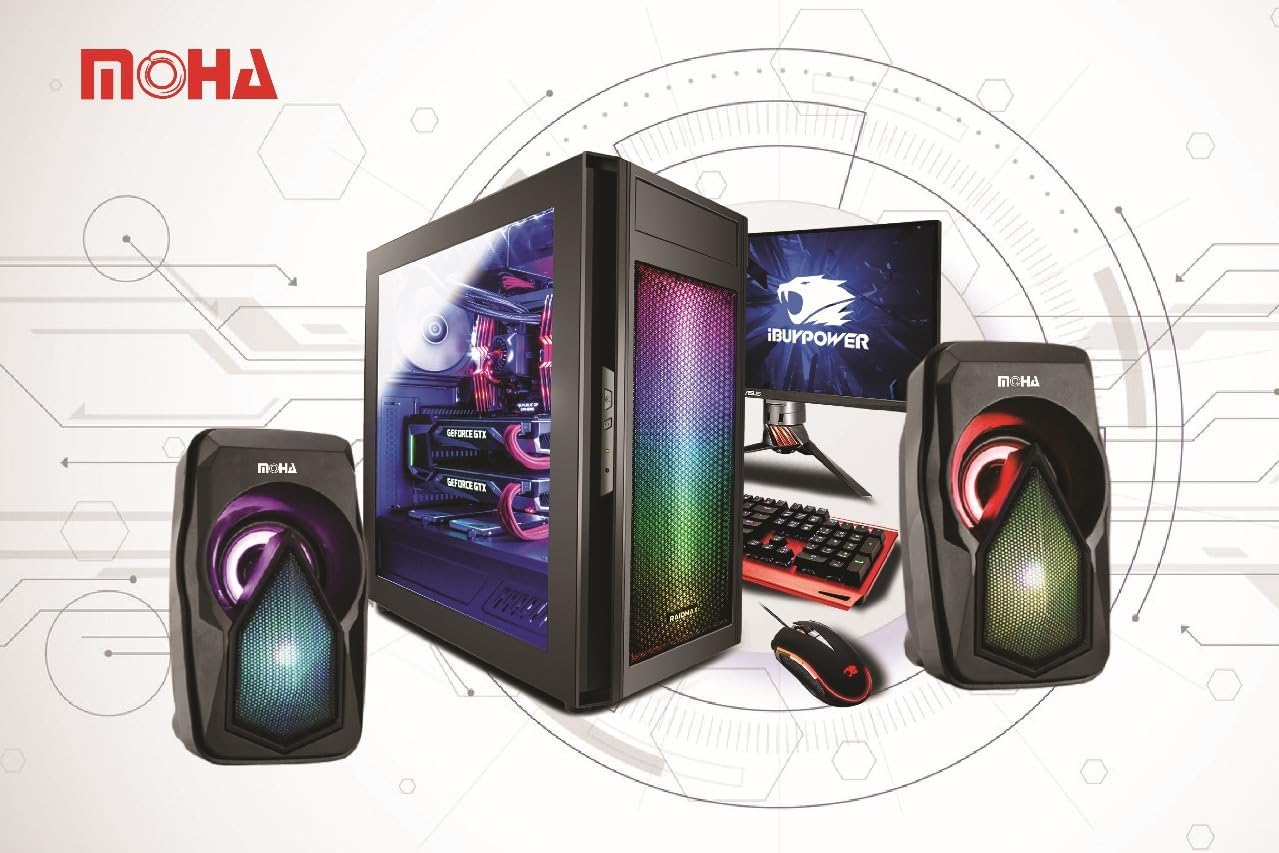 MOHA Computer Speakers for Desktop, Mini Stereo 2.0 RGB Gaming Speaker, USB Powered Multimedia PC Speaker with Volume Control, LED Lights, 3.5mm Aux-in for Laptop Projector Tablet Cellphone