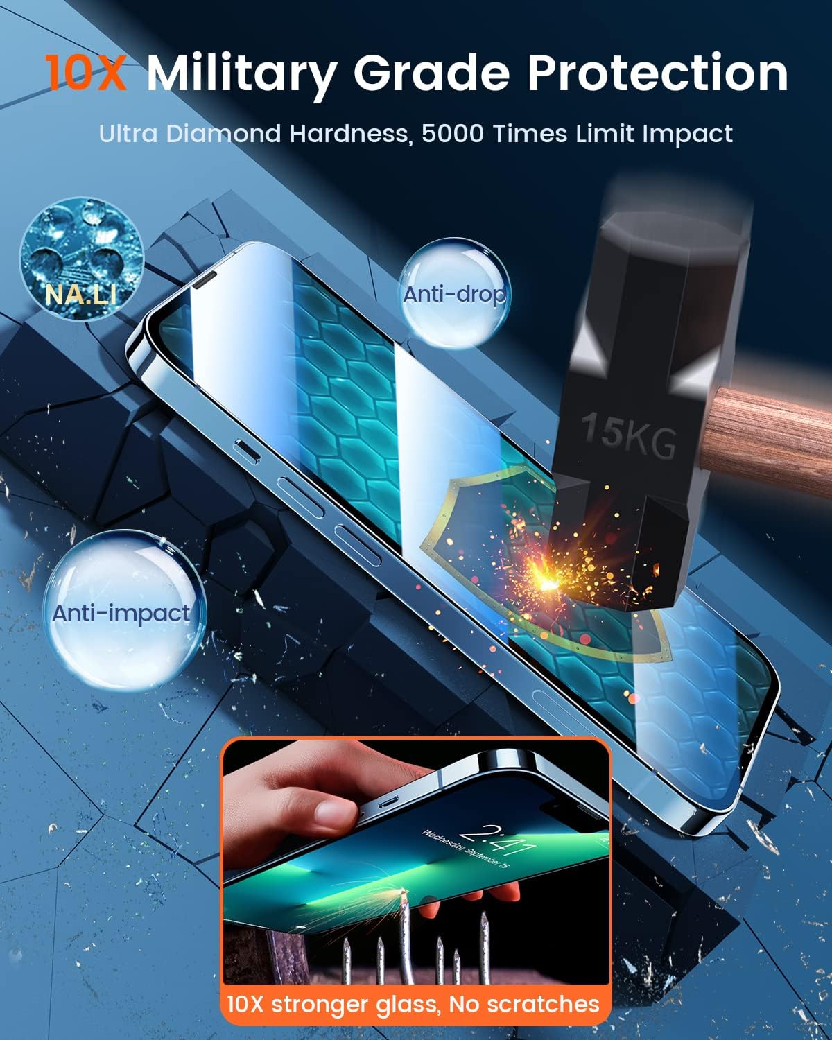 10X MILITARY SHOCKPROOF: This Screen Protector made of 9H super strong military explosion-proof glass, Its hardness has far exceeded the others(anti-scratch & shatterproof). Your screen is survived even if it falls from a height of 6Ft.