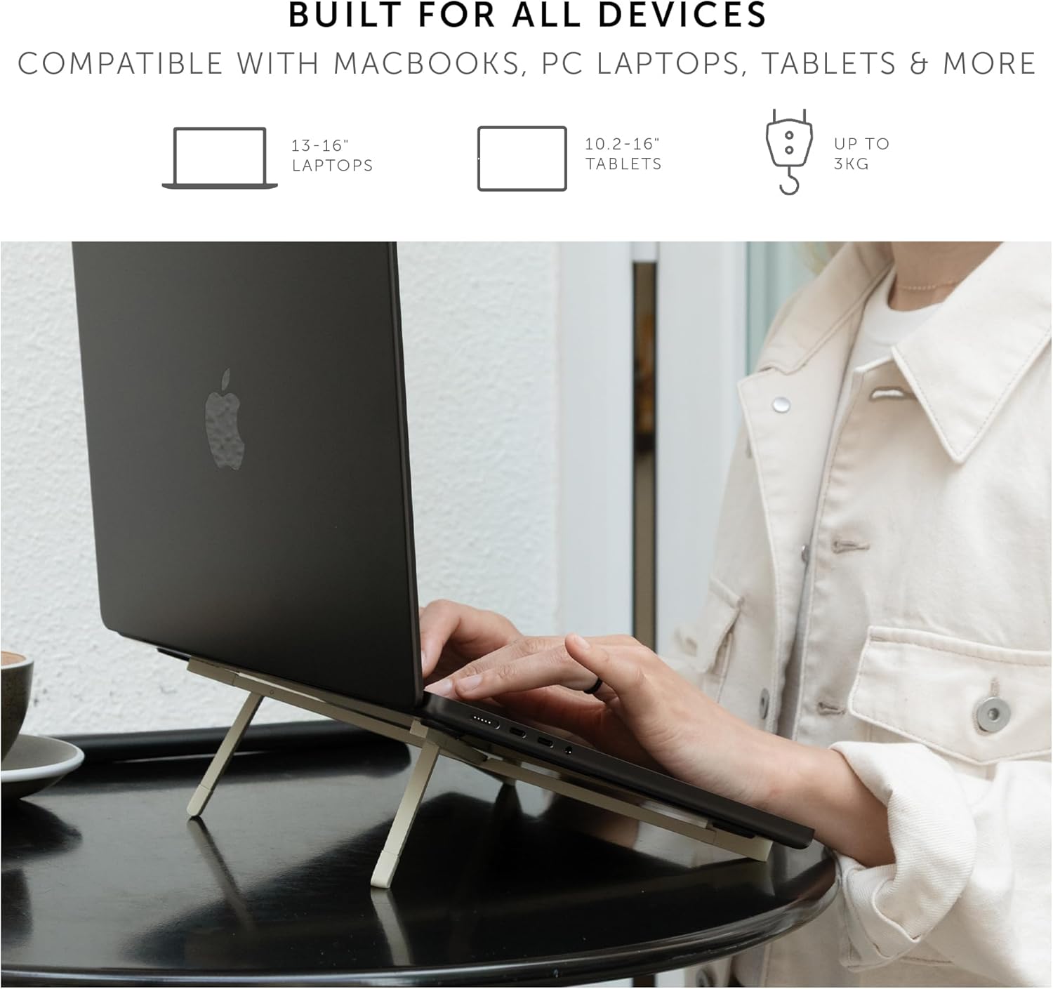 DURABLE BY DESIGN: Built to last with durable aluminum and fitted with non-slip silicone pads for enhanced stability. Super slim and just as sturdy, holding up to 3kg.