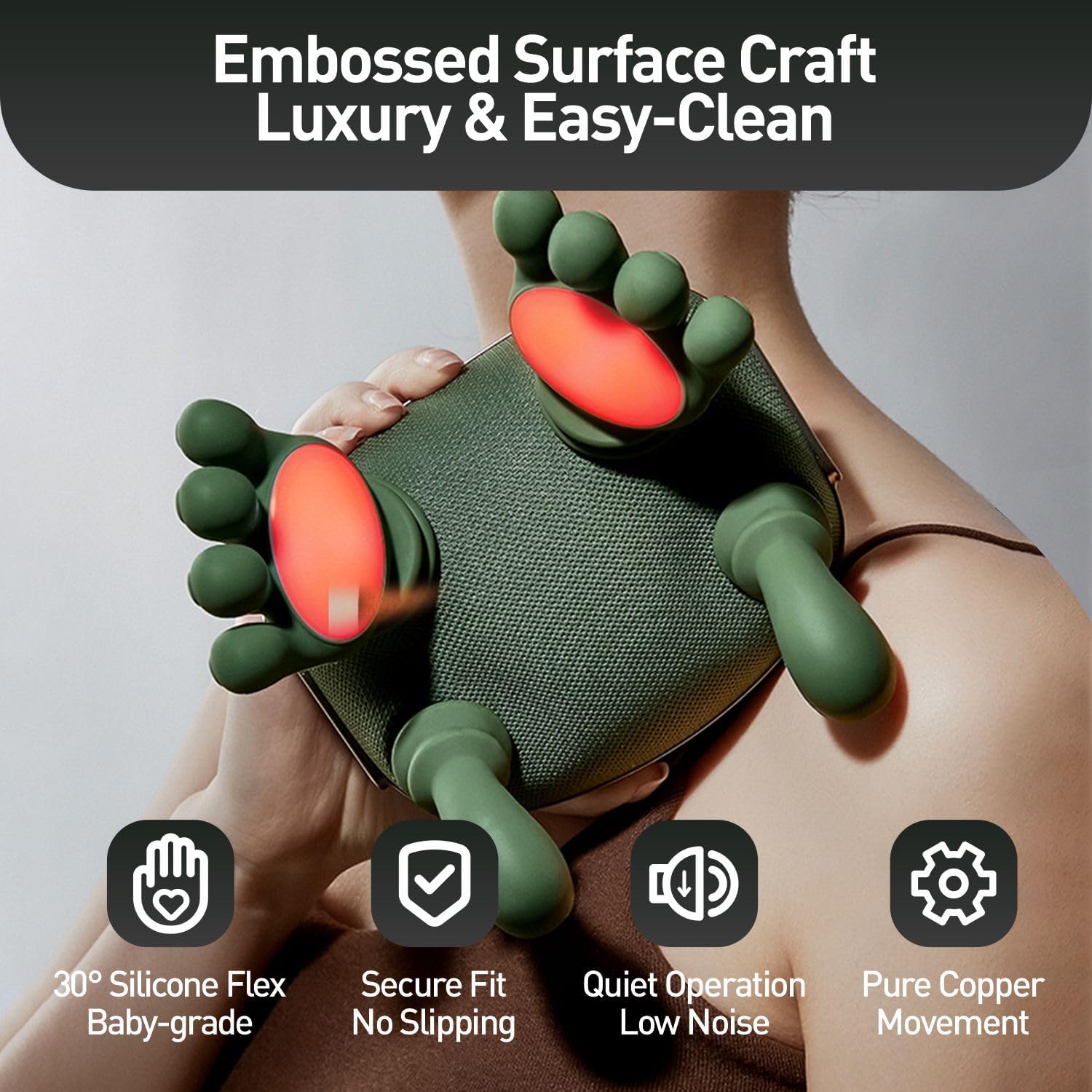 Heated Neck and Shoulder Massager: Dual heated palms provide comforting warmth with 2 heat settings (40°C–45°C), delivering deep relaxation and improved circulation