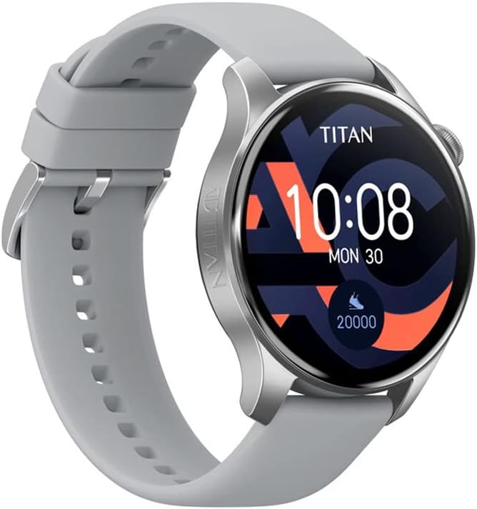 New Titan Talk Smart Watch|BT Calling|1.39″AMOLED Display|Immersive 454×454 Resolution|Music Storage|TWS Connect|AI Voice|Multisport Modes, Grey, Free Size, Modern, Unisex