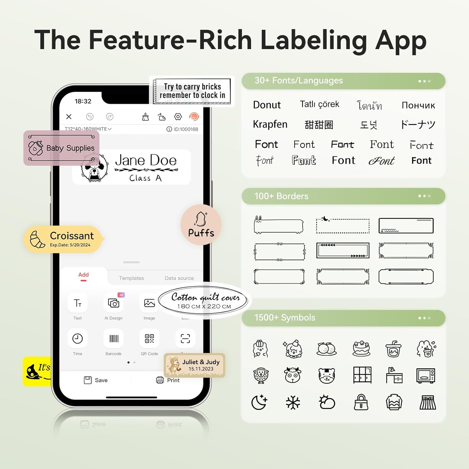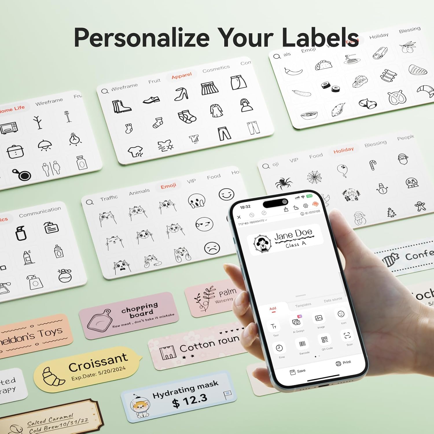 【Ideal Gifts】The NIIMBOT D110 Sticker Printer Machine is used widely in organizing home supplies – storage, food date marking, classifying cosmetics items, jar stickers; School name labels, study note and office files classification, cable identification, personal item identification, name tags; Small business – price tags, jewelry tags and more.
