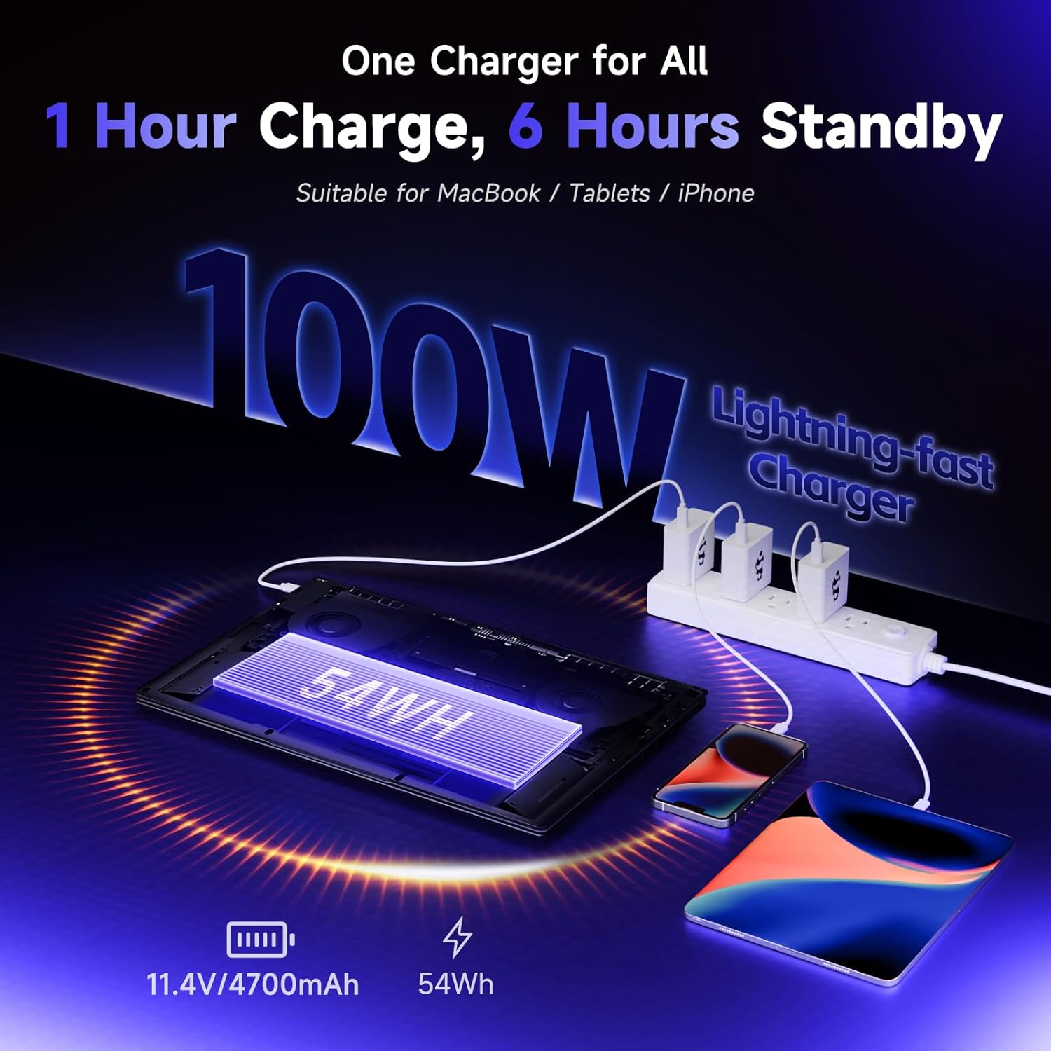 【100W USB-C PD Fast Charger】Travel with confidence using our compact 100W USB-C PD fast charger and 6.56-foot cable. 15 minutes of charging provides up to 2 hours of use, and it’s compatible with multiple devices to streamline your travel gear.