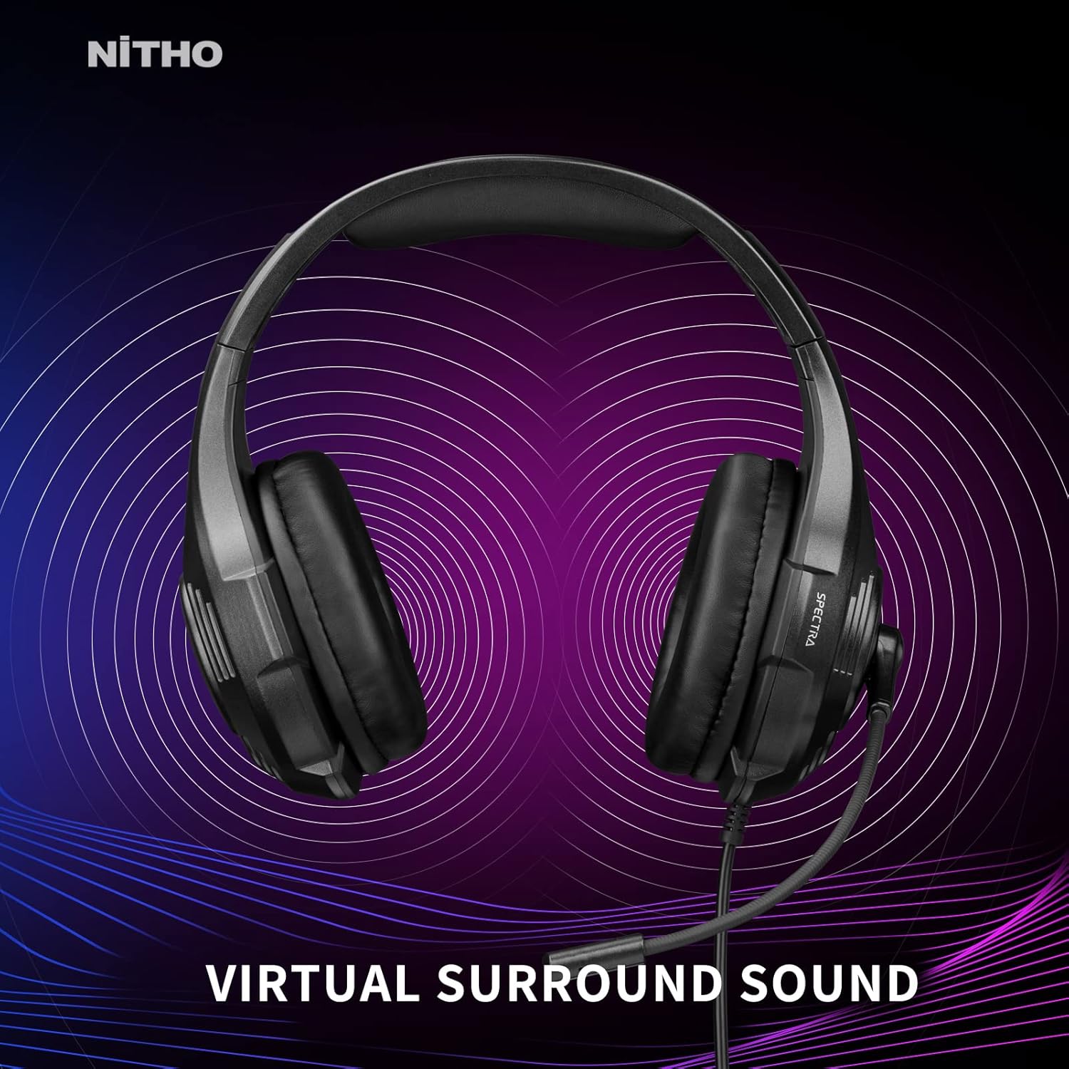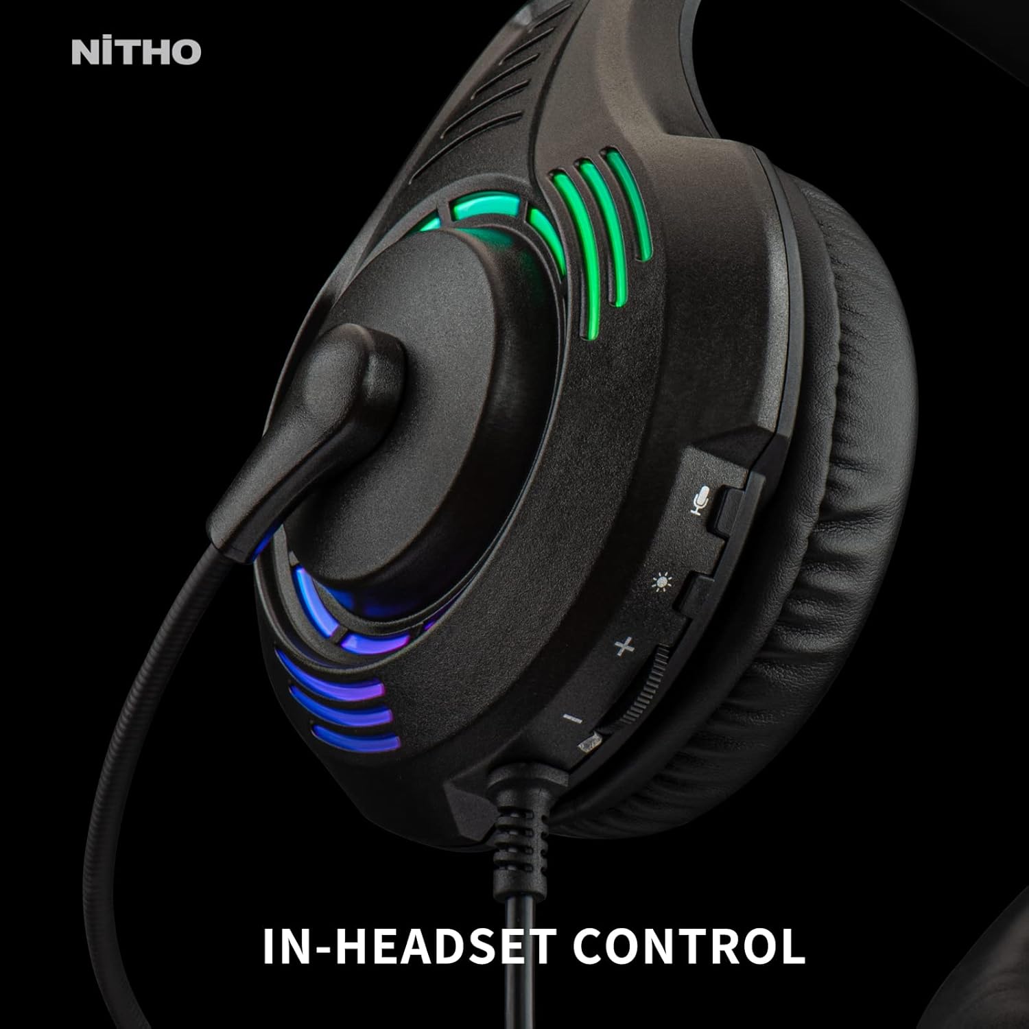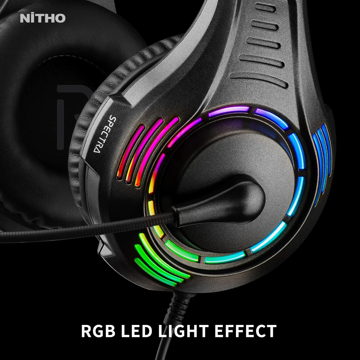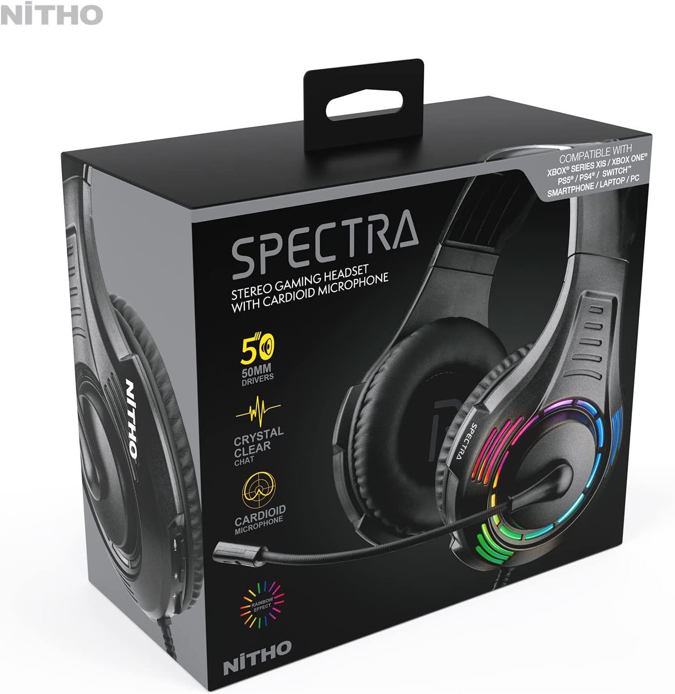 NiTHO Spectra Gaming Headset with RGB Light and Microphone, Over-Ear Stereo Headphones for Xbox Series X|S, Xbox One, PS5, PS4, Switch, PC, Mobile, 3.5 mm Audio Jack, 50 mm Drivers – Black