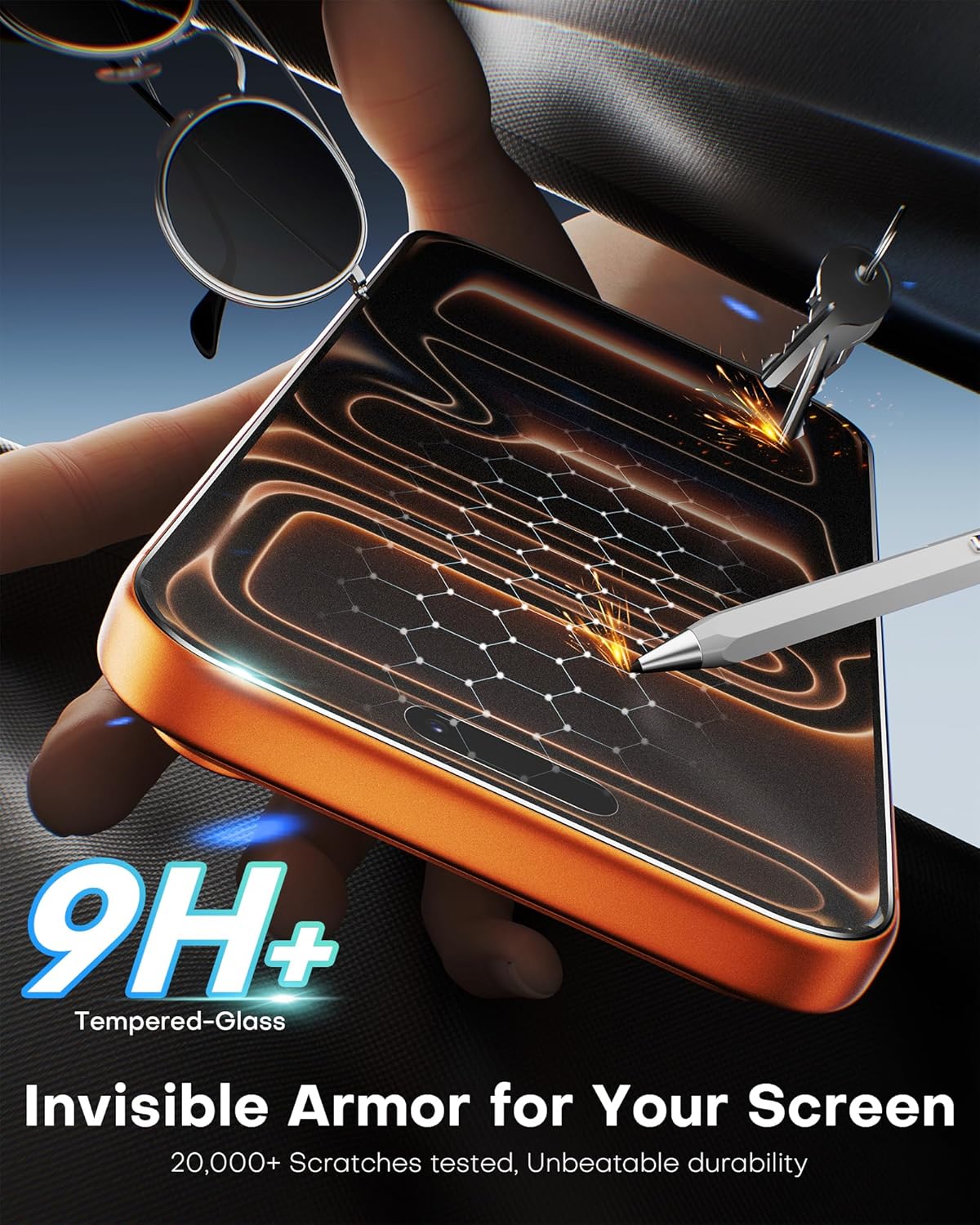9H Hard Glass for Ultimate Protection: Our screen protector and camera lens protector for 17 Pro Max Screen Protector is made from Ultra-high 9H hardness materials with matte layer for maximum resistance against impacts and scratches. Give your cellphone extra layer of sturdy protection.