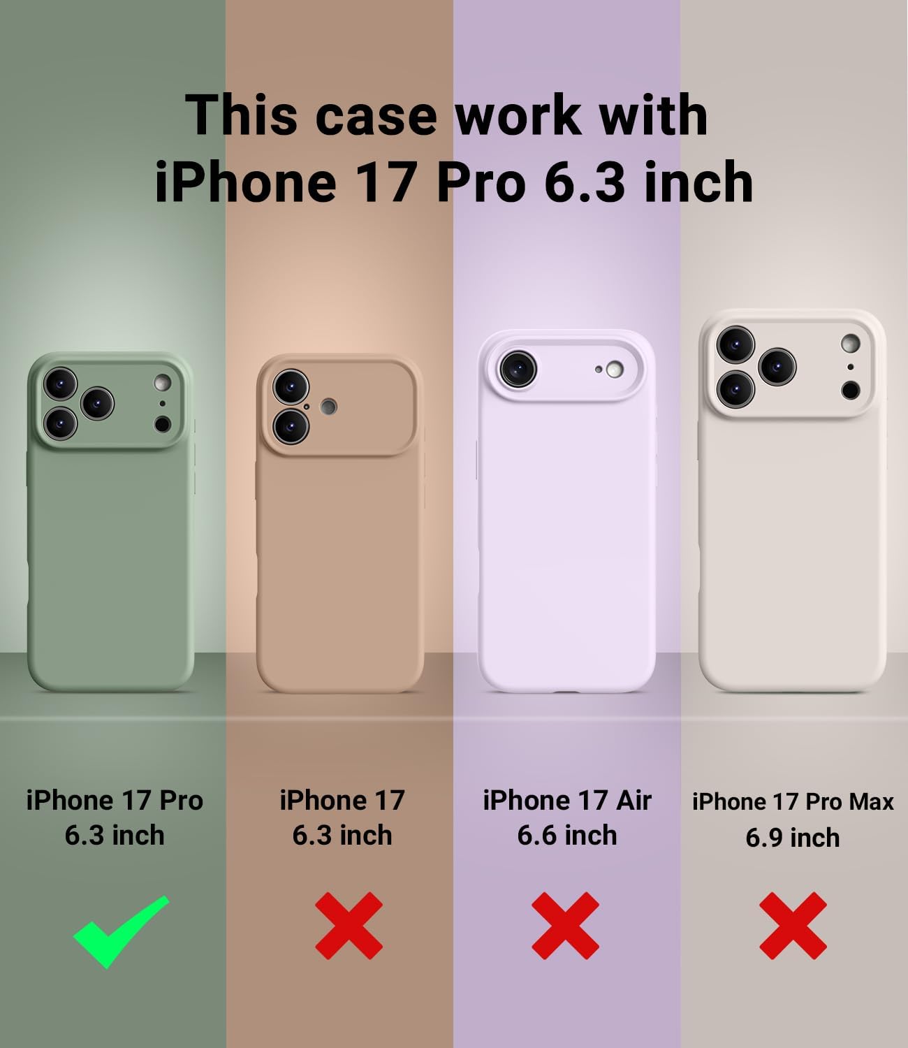 COMPATIBILITY — Upgraded Design Liquid Silicone iPhone 17 Pro case, non-slip, shockproof, anti-fingerprint, easy to clean. Compatible with wireless charging and MagSafe accessories.
