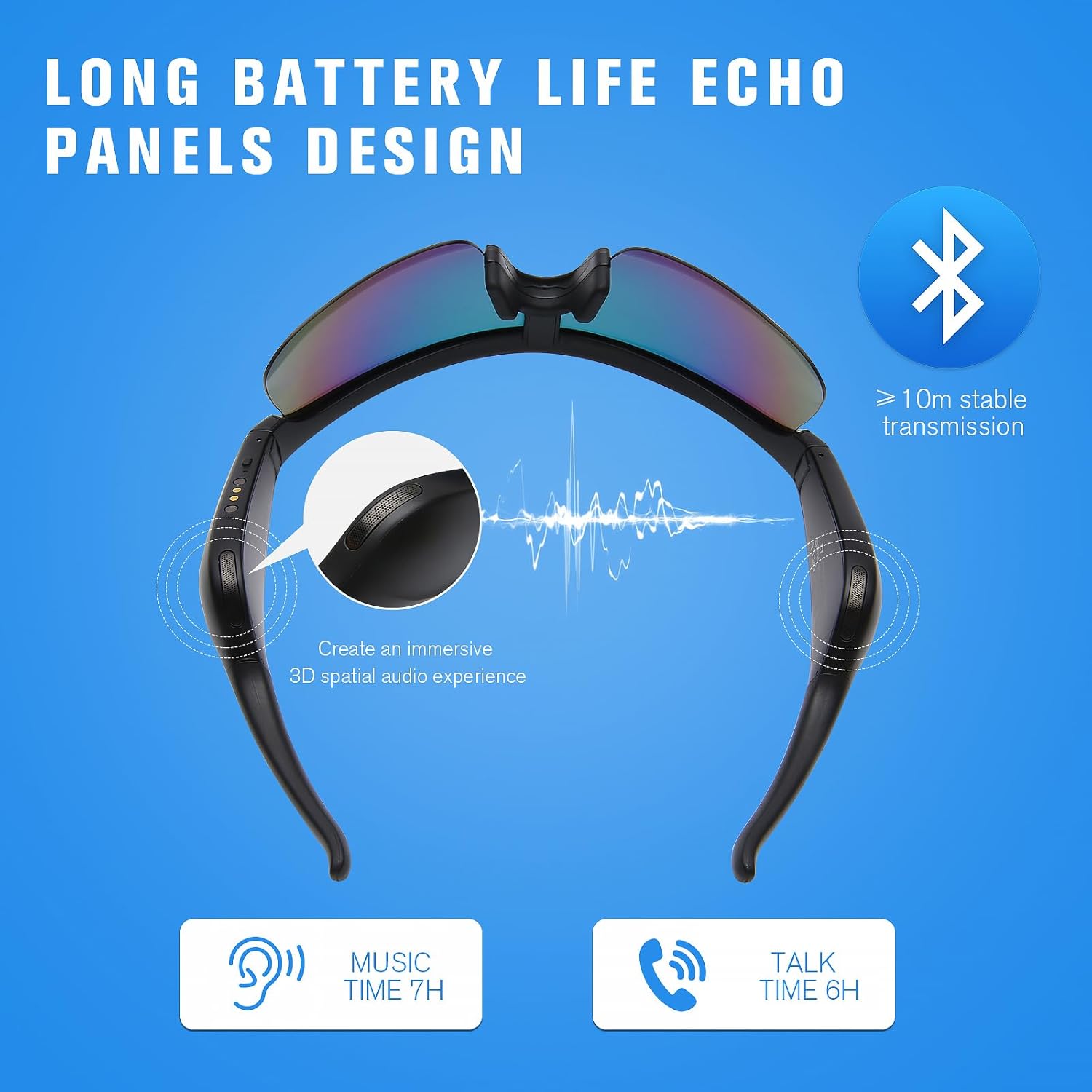 IMMERSIVE OPEN-EAR SOUND & ALL-DAY COMFORT: Smart glasses with open ear speakers deliver crystal-clear calls and immersive music without blocking ambient noise. Directional audio tech keeps conversations private, while ultra-soft silicone sound conduction covers prevent ear pain during all-day wear.