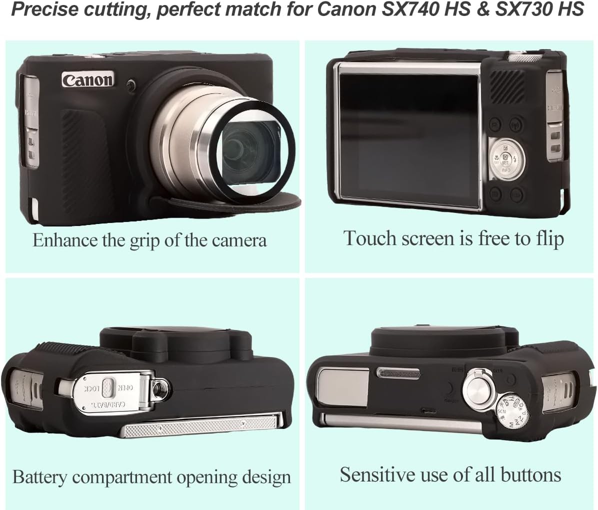 Perfect Fit: Custom designed for Canon Powershot SX740 HS, SX730 HS Digital Camera. Every incision in the silicone sleeve is accurate, all buttons are available including data port and battery part. Special design make you can freely to flip the SX740/SX730 HS camera screen.