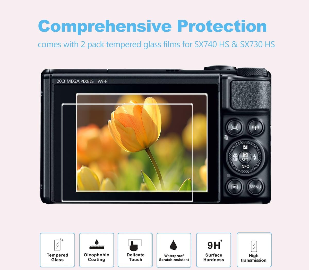 What You Get: 1*Case for SX740/SX730 HS; 1*Cleaning Cloth; 2*Tempered Glass Screen Protector. (Note: this camera case is only for SX740 HS & SX730 HS, Not applicable to other camera models, please confirm the camera model before order).