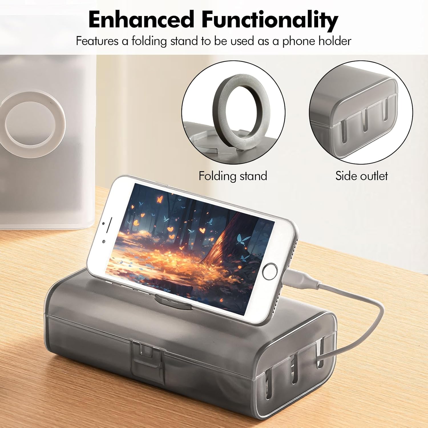 Enhanced Functionality – This multi-functional storage box features a folding stand to be used as a phone holder. The side outlet makes it convenient for the wires access, and it is also good for heat dissipation